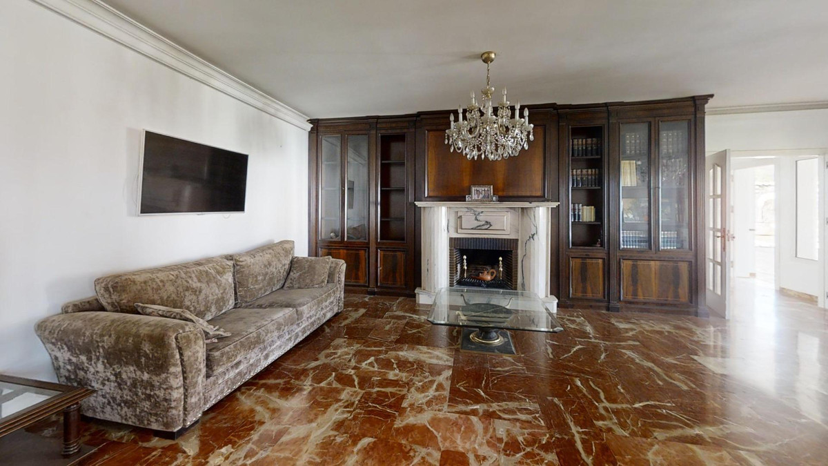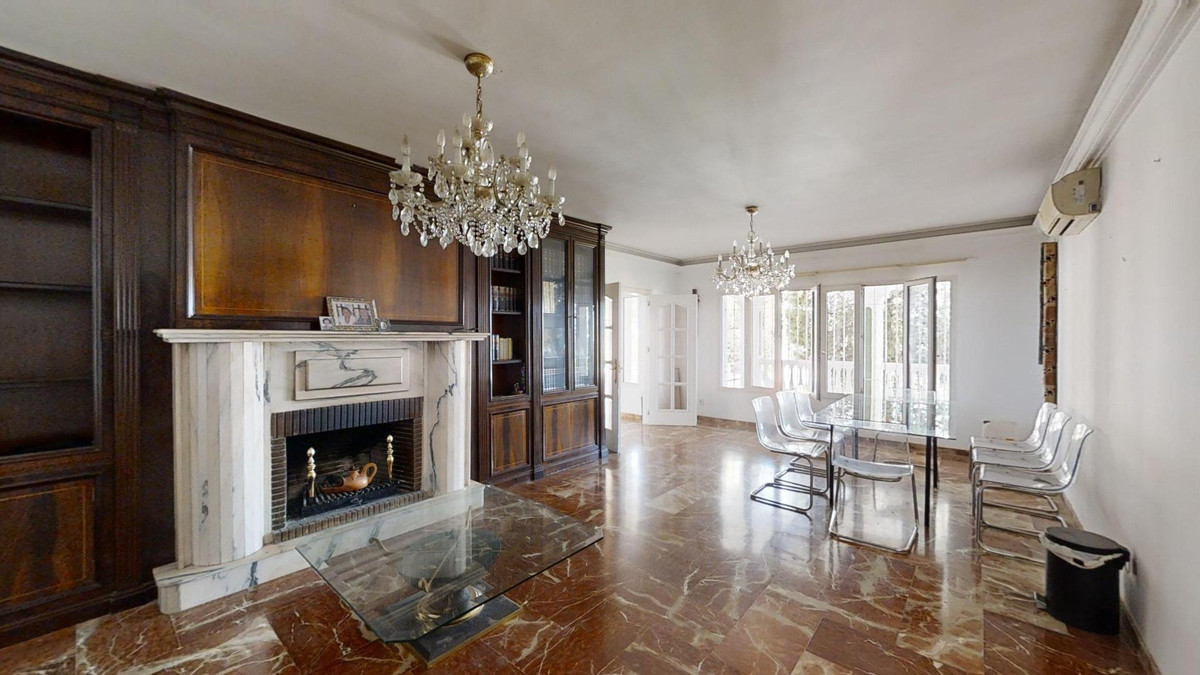 Grand salon-salle à manger avec cheminée, un cadre chaleureux et élégant pour les réunions de famille et les réceptions.