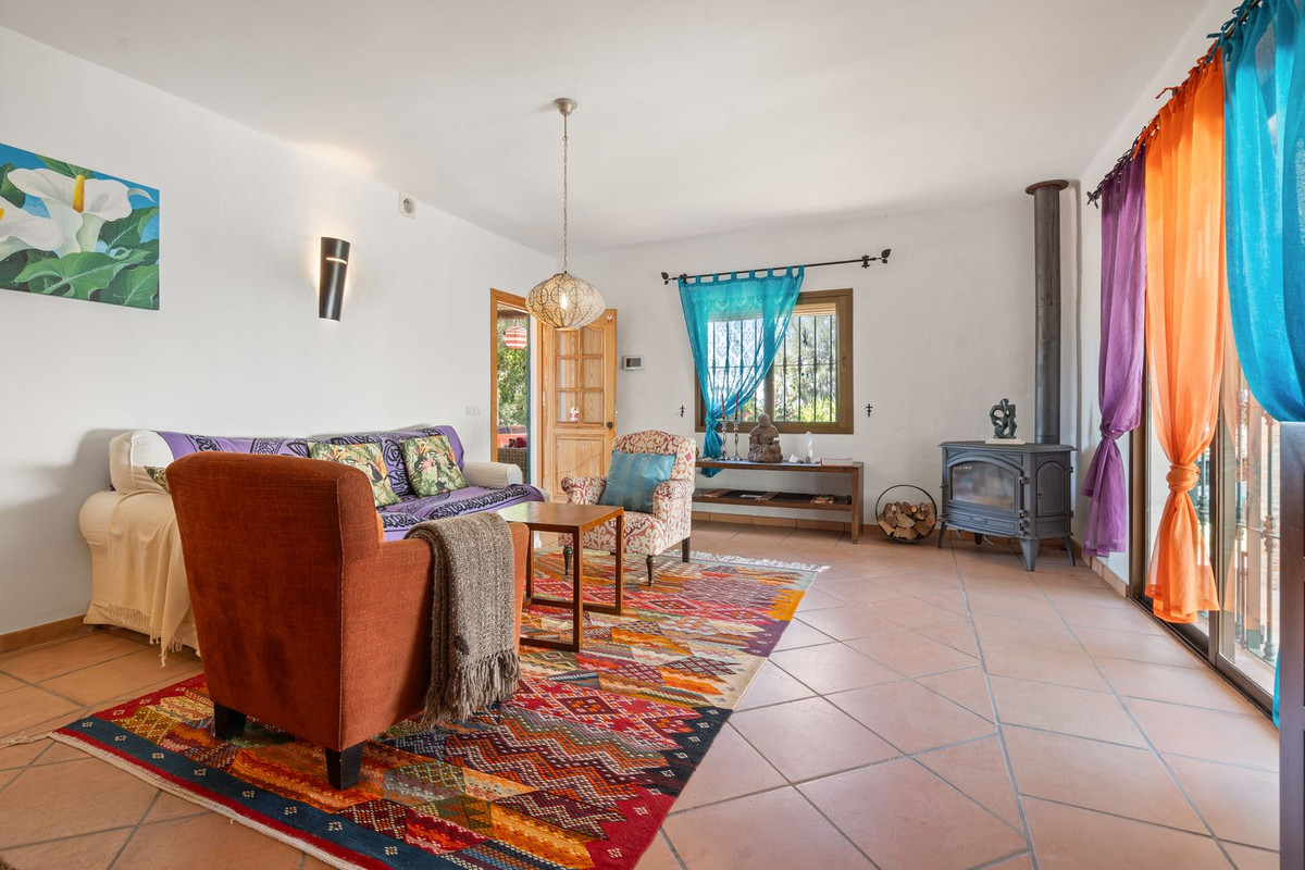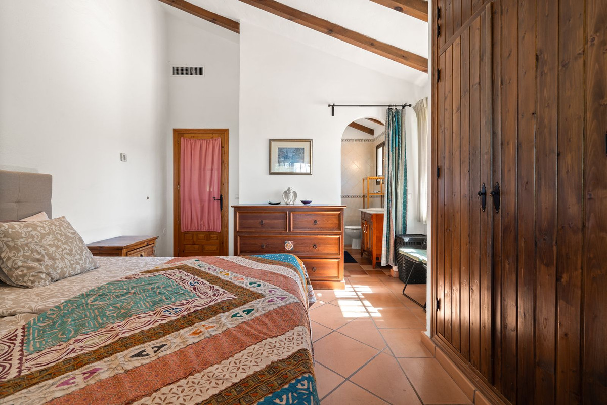 Cette villa de plain-pied, à l'agencement pratique et fluide, conserve le charme authentique d'une maison de campagne. Des détails tels que des plafonds voûtés et à poutres apparentes, des pierres rustiques et du fer forgé décoratif apportent chaleur et personnalité. Une suite d'invités séparée, accessible par un escalier extérieur depuis le patio, assure l'intimité des visiteurs. L'élégante allée, les oliviers, les points d'eau et le verger créent l'atmosphère d'une finca miniature.