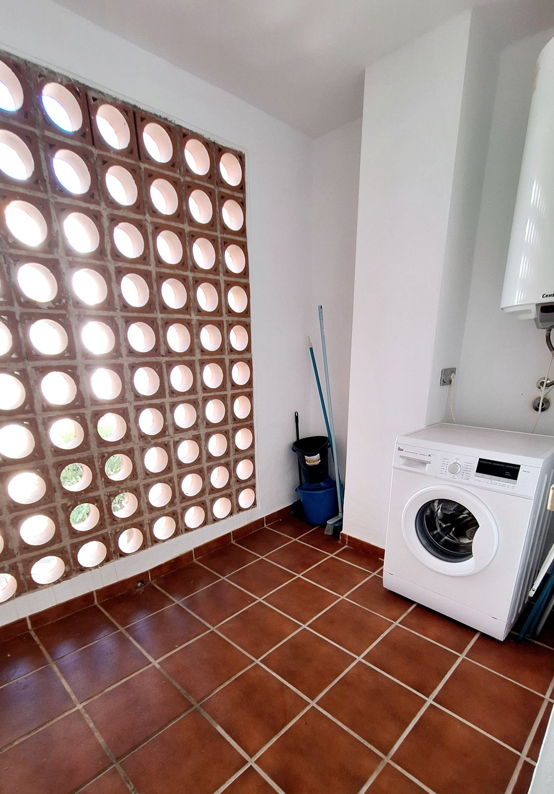 La propriété dispose d'une cuisine spacieuse et entièrement équipée, ainsi que d'une buanderie séparée pratique. Le salon-salle à manger, moderne et chaleureux, donne directement sur une grande terrasse privée avec vue panoramique sur la mer, idéale pour admirer des levers de soleil inoubliables.