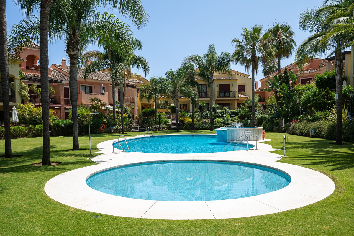 EXCLUSIVITÉ ! Découvrez cette magnifique maison jumelée située dans une urbanisation privée exclusive de style andalou, en plein cœur du très convoité Golden Mile de Marbella. Un véritable bijou alliant charme traditionnel et modernité, grâce à une rénovation partielle soignée.