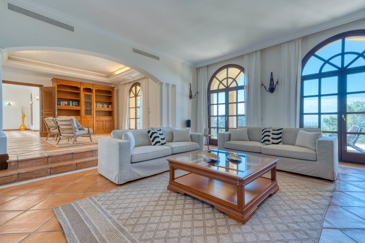 Plongez dans un luxe intemporel avec cette magnifique villa de six chambres, à l'intimité absolue, située dans l'un des domaines privés et sécurisés les plus prestigieux d'Europe. Implantée sur un vaste terrain de 6 173 m², cette impressionnante résidence offre une intimité totale, une vue imprenable sur la Méditerranée et les montagnes environnantes, et plus de 970 m² d'espace de vie raffiné. Une allée majestueuse mène à l'entrée principale et à un garage souterrain pour trois voitures. À l'intérieur, un magnifique atrium central baigne la maison de lumière naturelle, reliant harmonieusement la cuisine entièrement équipée, la salle à manger formelle et le salon en contrebas, conçu pour des réceptions élégantes et une vie de famille décontractée. Le niveau principal comprend trois suites spacieuses, tandis qu'au niveau inférieur, la maison se transforme en un véritable havre de paix privé, avec un élégant salon-bar, une seconde cuisine, une salle de jeux, une salle de sport, un sauna, un hammam et trois suites supplémentaires avec accès direct au jardin.