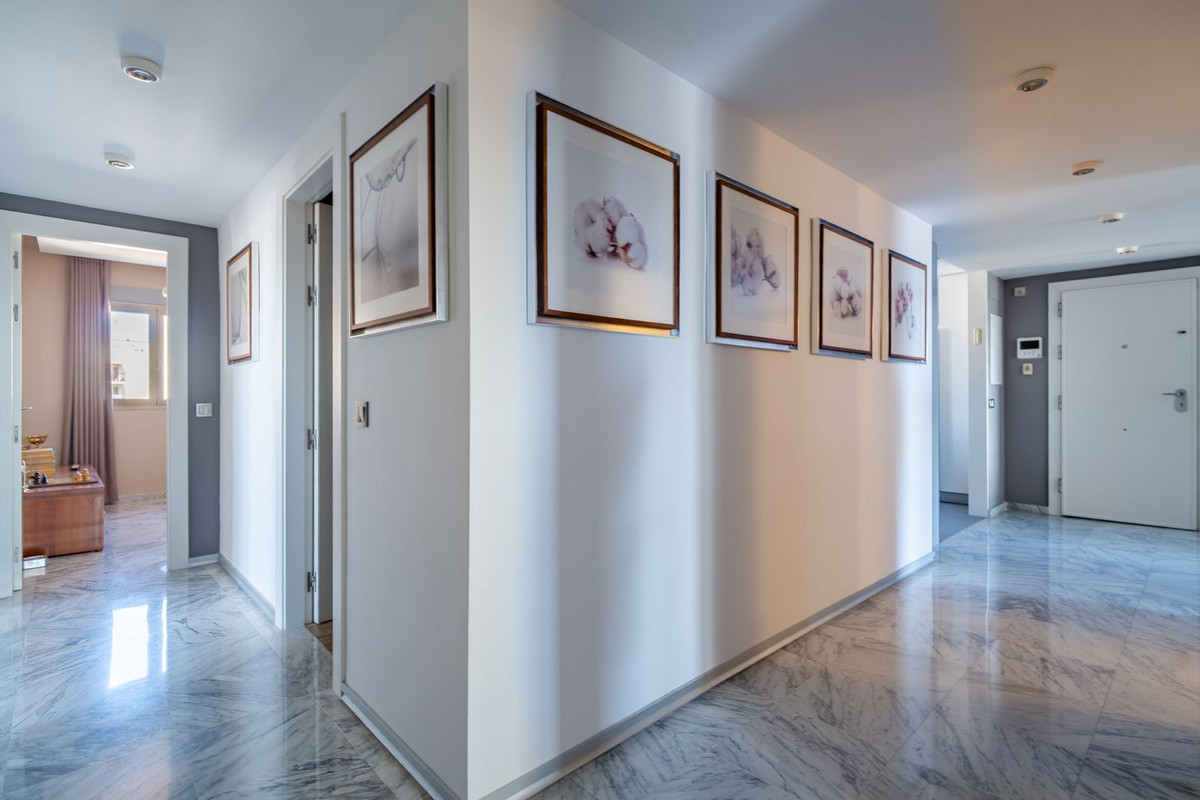 Le penthouse a été conçu avec des matériaux et des finitions haut de gamme : sols en marbre, portes laquées blanches, éclairage d'ambiance indirect, murs décorés de revêtements exclusifs, menuiserie extérieure en aluminium avec double vitrage Climalit pour une excellente isolation thermique et acoustique.