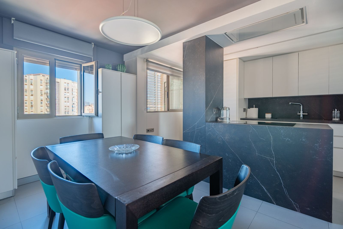 Le spacieux salon-salle à manger, baigné de lumière naturelle, s'ouvre sur une magnifique terrasse de 30 m² conçue pour le plaisir : pour un petit-déjeuner au soleil, un dîner au coucher du soleil ou tout simplement pour se détendre. De cette terrasse, vous accédez à un solarium privé de 200 m², un espace unique offrant une vue panoramique imprenable sur Malaga, idéal pour créer un espace détente, une petite piscine ou un jardin urbain.