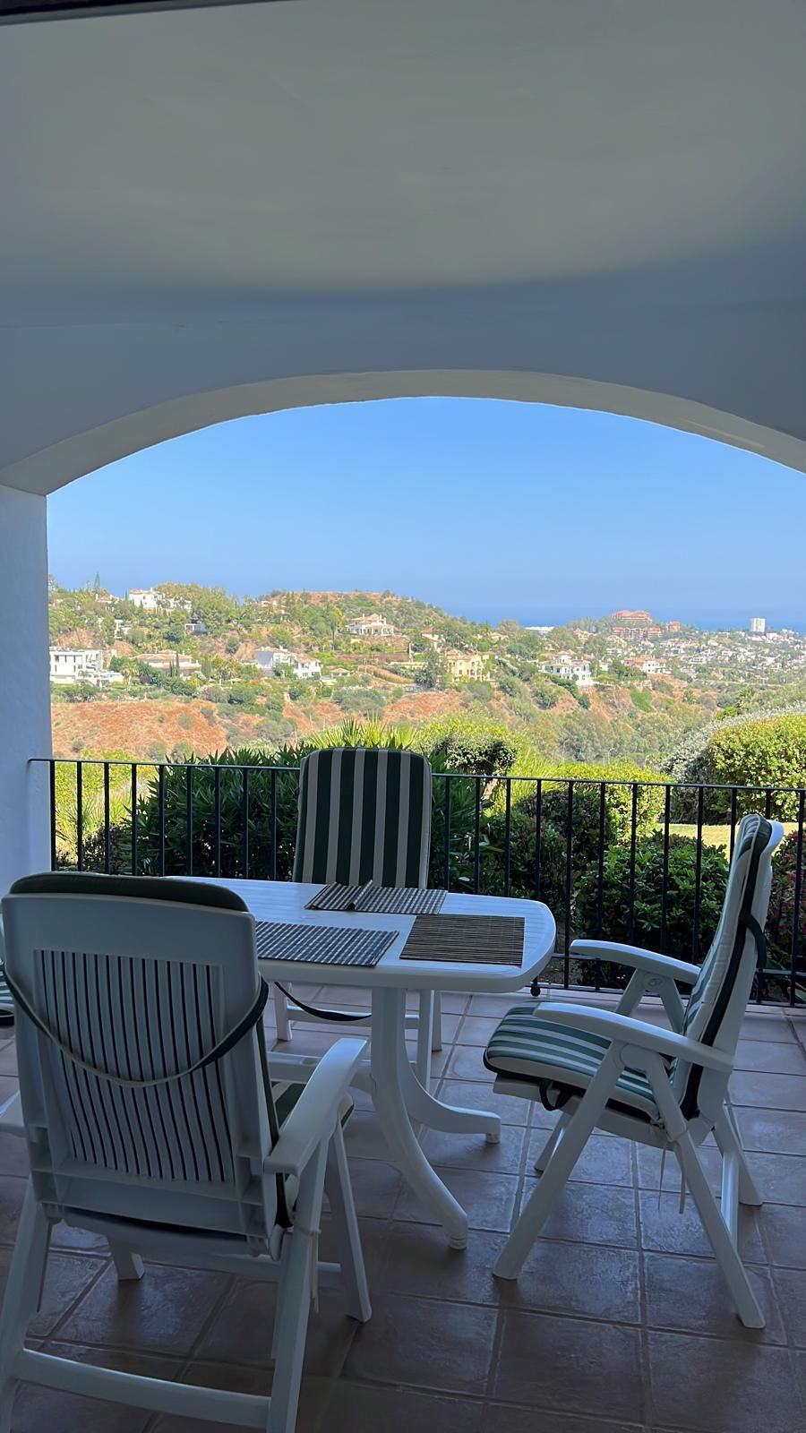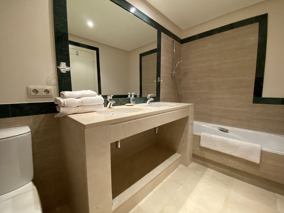 Cette propriété est un grand appartement de 2 chambres au rez-de-chaussée bien aménagé, avec une vue imprenable sur les jardins luxuriants et le golf de La Quinta jusqu'à la mer Méditerranée et La Concha.
