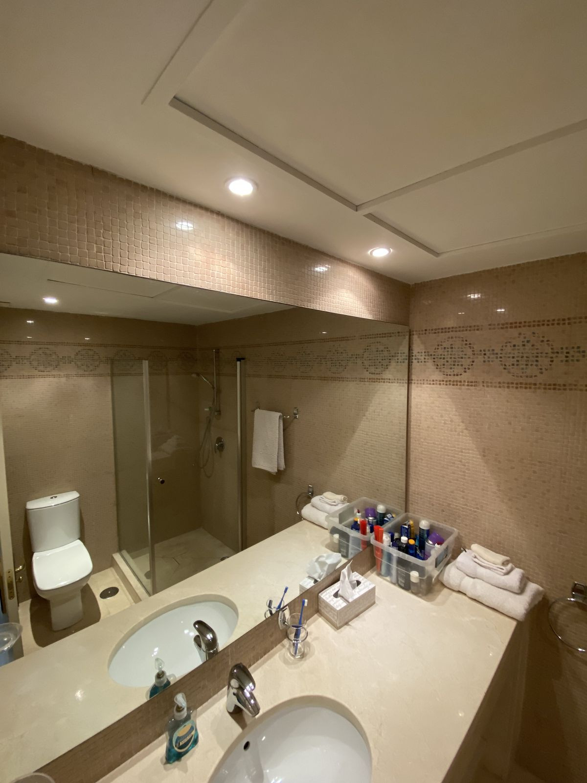La chambre principale est extrêmement spacieuse et dispose de placards intégrés et de nombreux rangements. Elle dispose également d'une grande salle de bains attenante avec des finitions en marbre et granit, une double vasque, un bidet et une baignoire avec douche.
