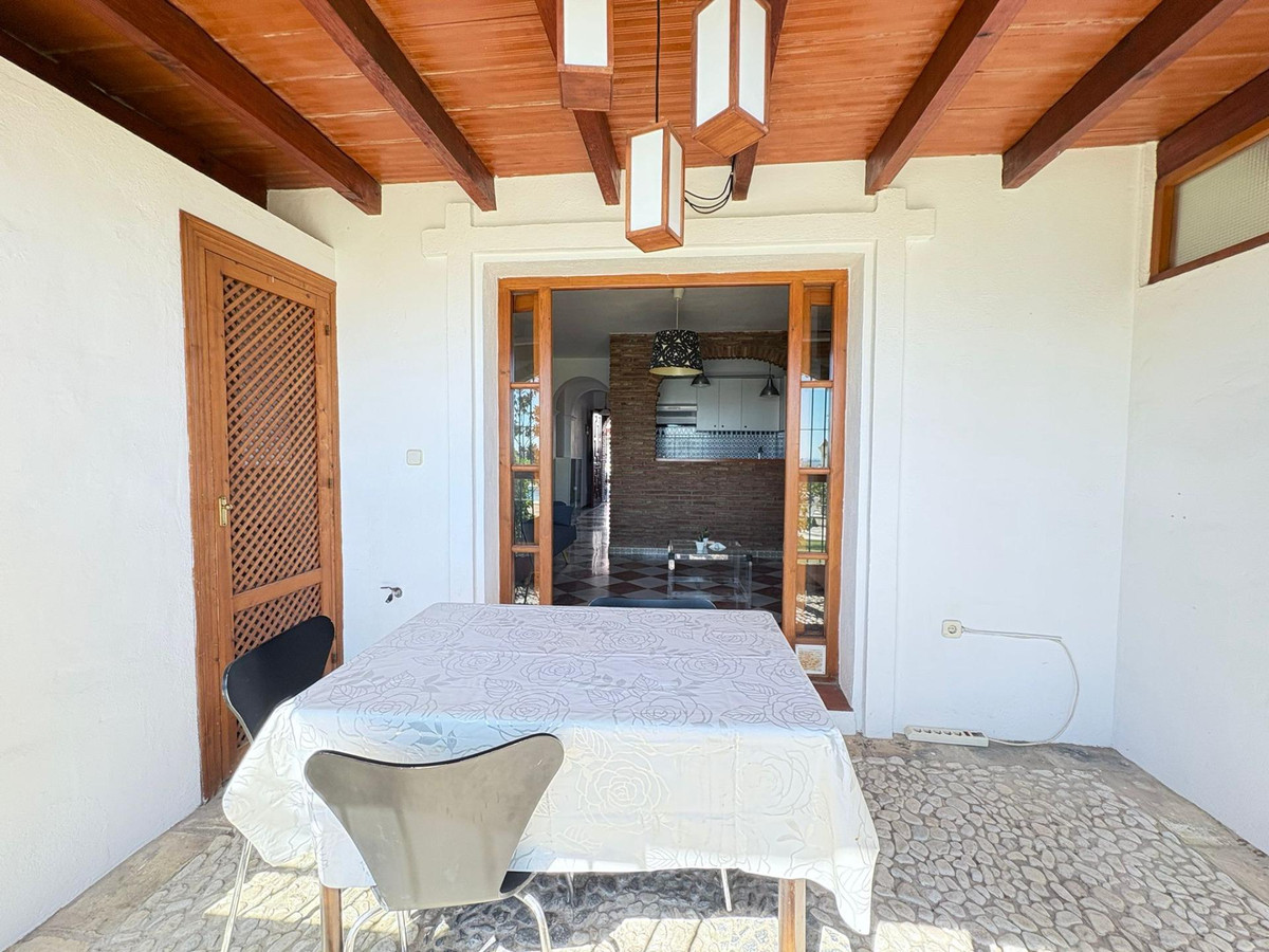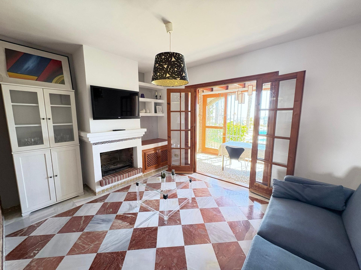 La propriété comprend une chambre spacieuse avec placards intégrés, une salle de bain complète ornée de carrelage andalou traditionnel et un agencement pensé pour optimiser chaque mètre carré. Le salon lumineux et accueillant, doté d'une cheminée, apporte chaleur et caractère, idéal pour des soirées conviviales. La cuisine ouverte, entièrement équipée, s'intègre harmonieusement à l'espace de vie, créant une atmosphère fonctionnelle et moderne tout en conservant une touche classique.
