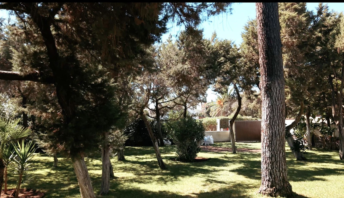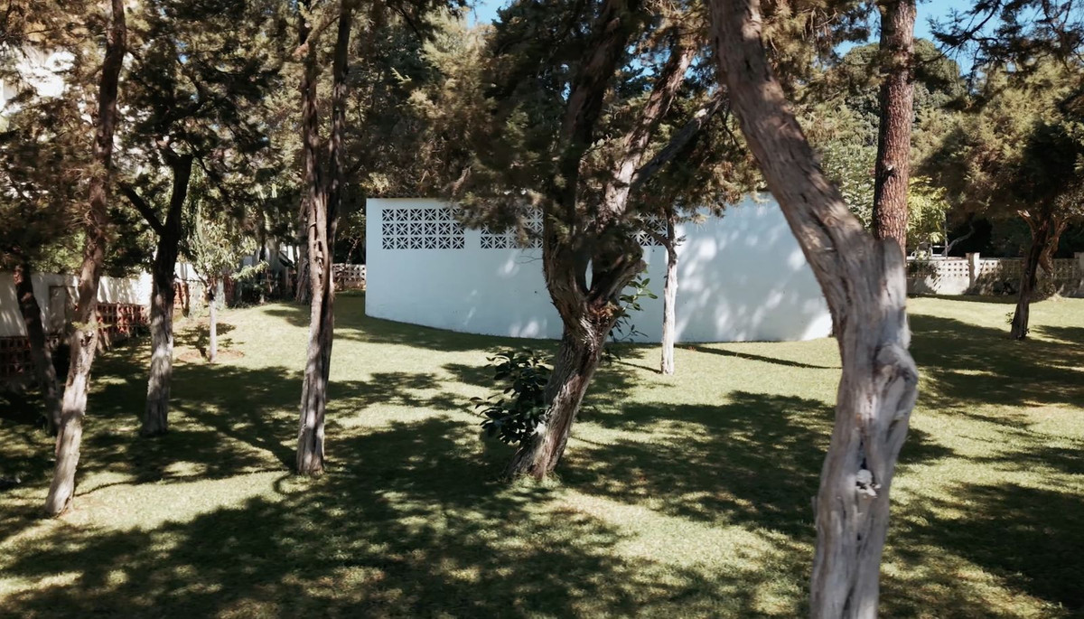 Le terrain est entouré de verdure, créant une atmosphère d'intimité et d'harmonie naturelle.