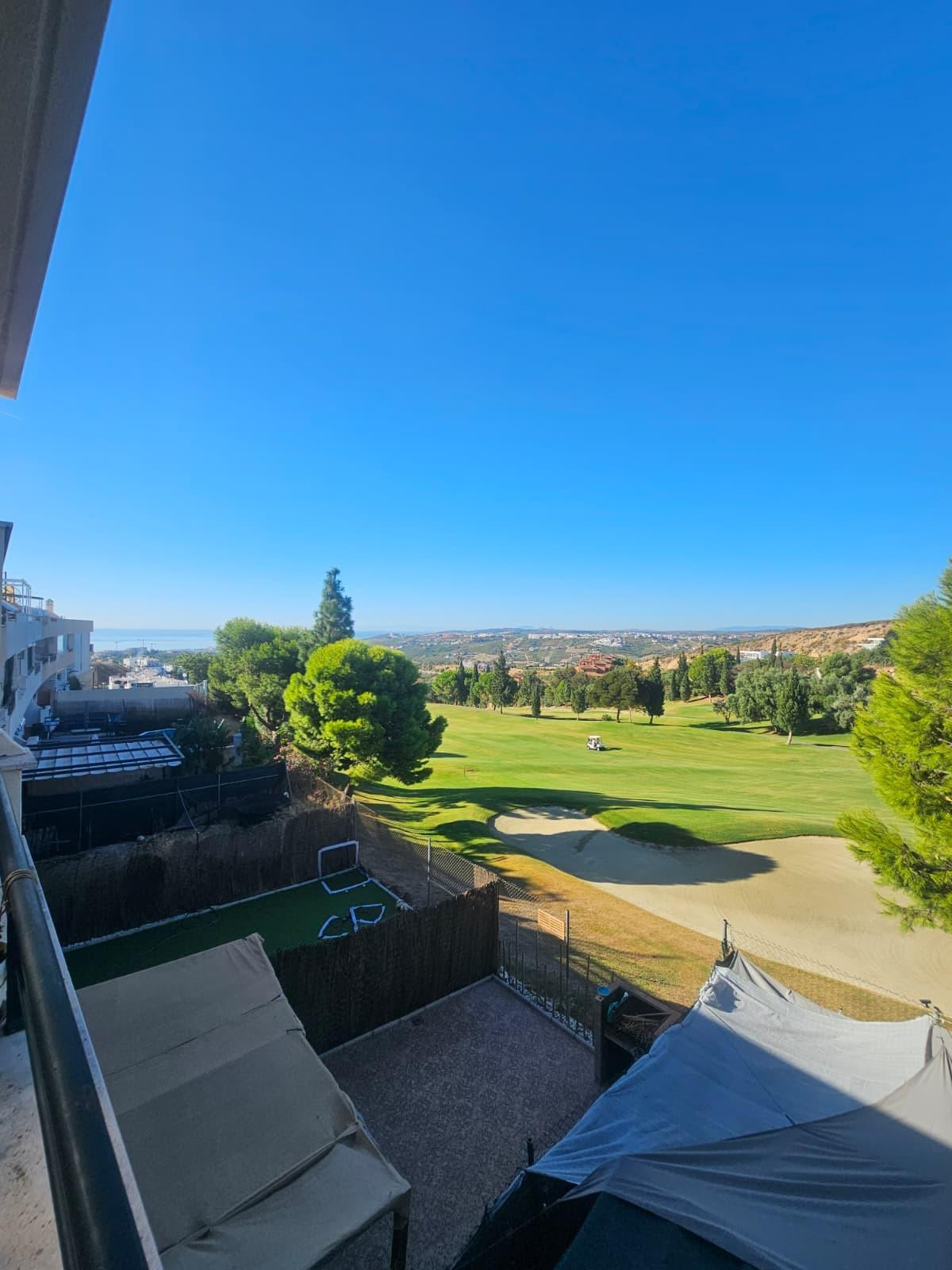 One of the property’s main highlights is its private 120 m² solarium, directly accessible from the apartment. This exceptional outdoor space can be arranged into different relaxation areas, a dining corner, a lounge area, or even a jacuzzi, all while enjoying breathtaking views over the surrounding golf course and the distant Mediterranean Sea. The open panoramic scenery creates a peaceful and exclusive atmosphere, ideal for unwinding or entertaining in complete privacy.