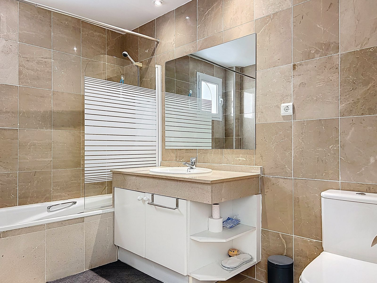 La cuisine semi-ouverte, soigneusement conçue et dotée d'un passe-plat pratique, allie fonctionnalité et charme, idéale pour recevoir tout en restant en contact avec la salle à manger. Les deux chambres, aux dimensions généreuses, disposent d'élégantes salles de bains attenantes, garantissant confort et intimité aux résidents comme aux invités.