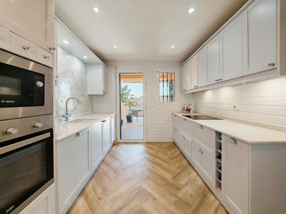Semi Detached House for sale in , Mijas Costa with 3 bedrooms, 3 bathrooms and with orientation south/west, with communal swimming pool, private garage (1 parking spaces) and private garden. Regarding property dimensions, it has 139 m² built and 27 m² terrace. Has the following facilities amenities near, transport near, air conditioning, fully fitted kitchen, utility room, fireplace, guest room, storage room, alarm, dining room, private terrace, kitchen equipped, living room, golf view, laundry room, internet - wi-fi, covered terrace, fitted wardrobes, gated community, unfurnished, close to children playground, close to sea / beach, close to golf, uncovered terrace, balcony, good condition, urban view, close to shops, close to town and close to schools.