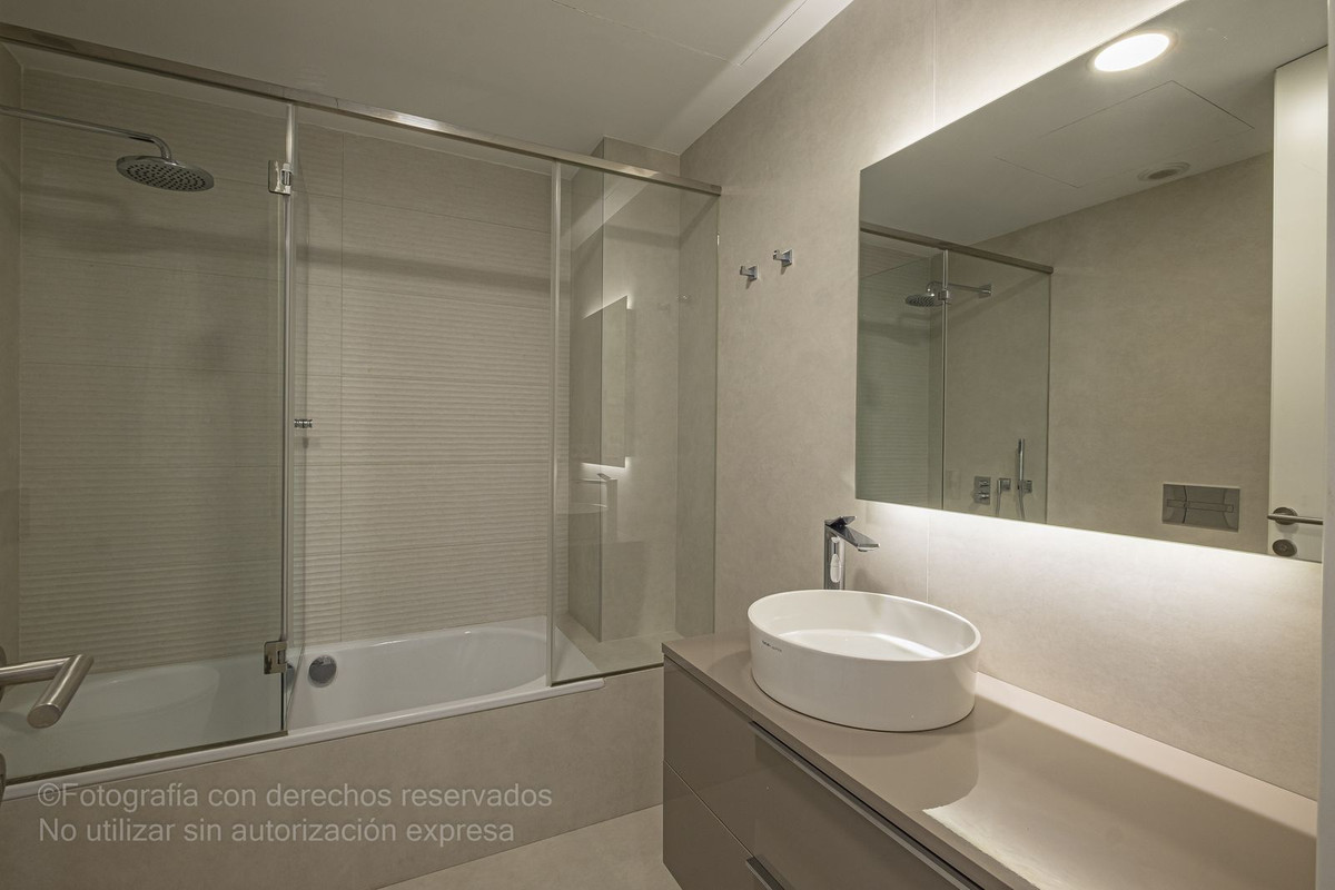 This sophisticated 3 bedroom apartment has a main terrace facing south. It has 2 bathrooms, one with shower and one with bathtub, plus a guest toilet. The apartment includes underfloor heating, air conditioning hot/cold, a domotic control system and is connected to a central alarm system.