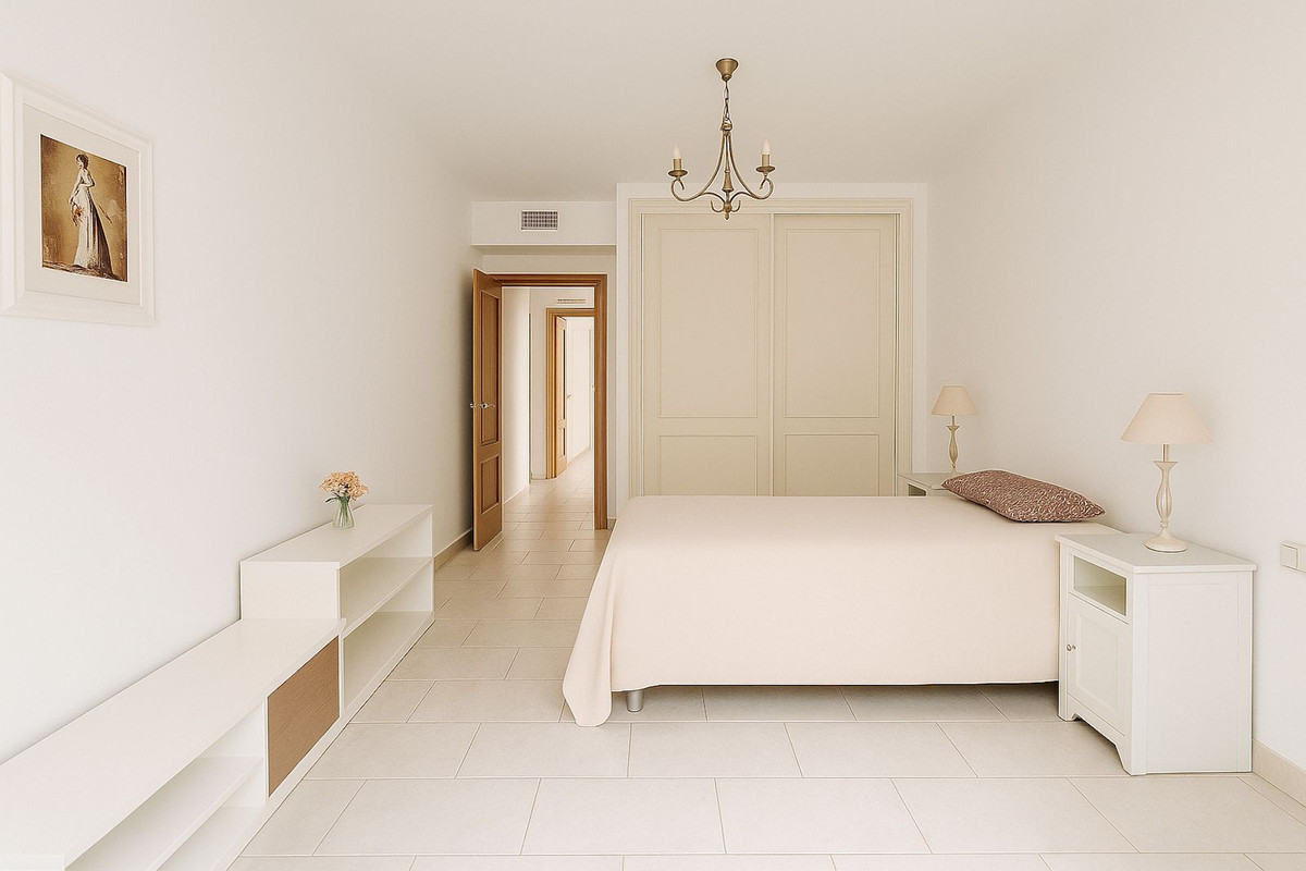 La propriété comprend deux chambres spacieuses et deux salles de bains (l'une avec baignoire, l'autre avec douche). Le lumineux salon-salle à manger donne directement sur une grande terrasse avec vue panoramique, idéale pour profiter du climat méditerranéen.