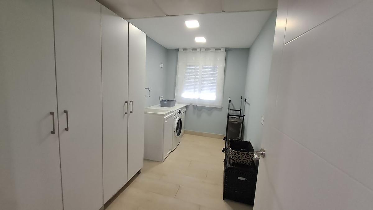 Upstairs there are 2 spacious bedrooms with a shared bathroom + a separate laundry room + a master bedroom of 60m² including a master bathroom with double bath, shower and a cool dressing room. From here you step directly onto a large terrace with access to a solarium where you can enjoy the sunset.