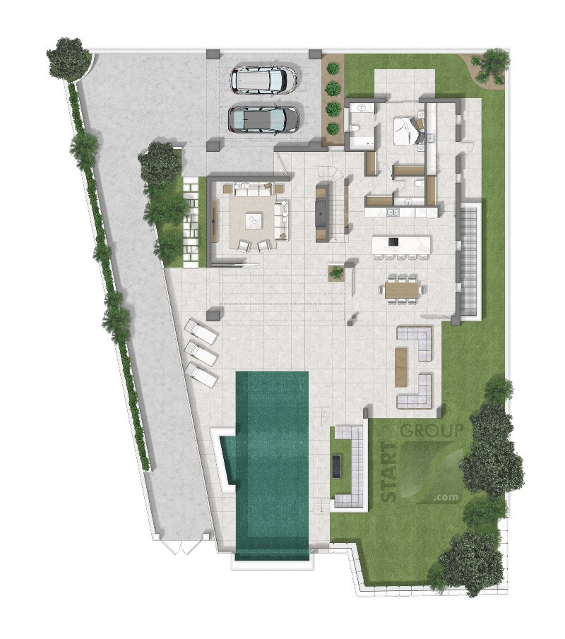 L'acheteur a la possibilité d'acheter la villa avec un sous-sol en option. Cet espace peut comprendre un garage pour deux à trois voitures, une chambre d'amis, une salle de bain, un espace de rangement ainsi qu'une pièce pouvant être transformée en salle de sport, salle de jeux ou même en home cinéma !