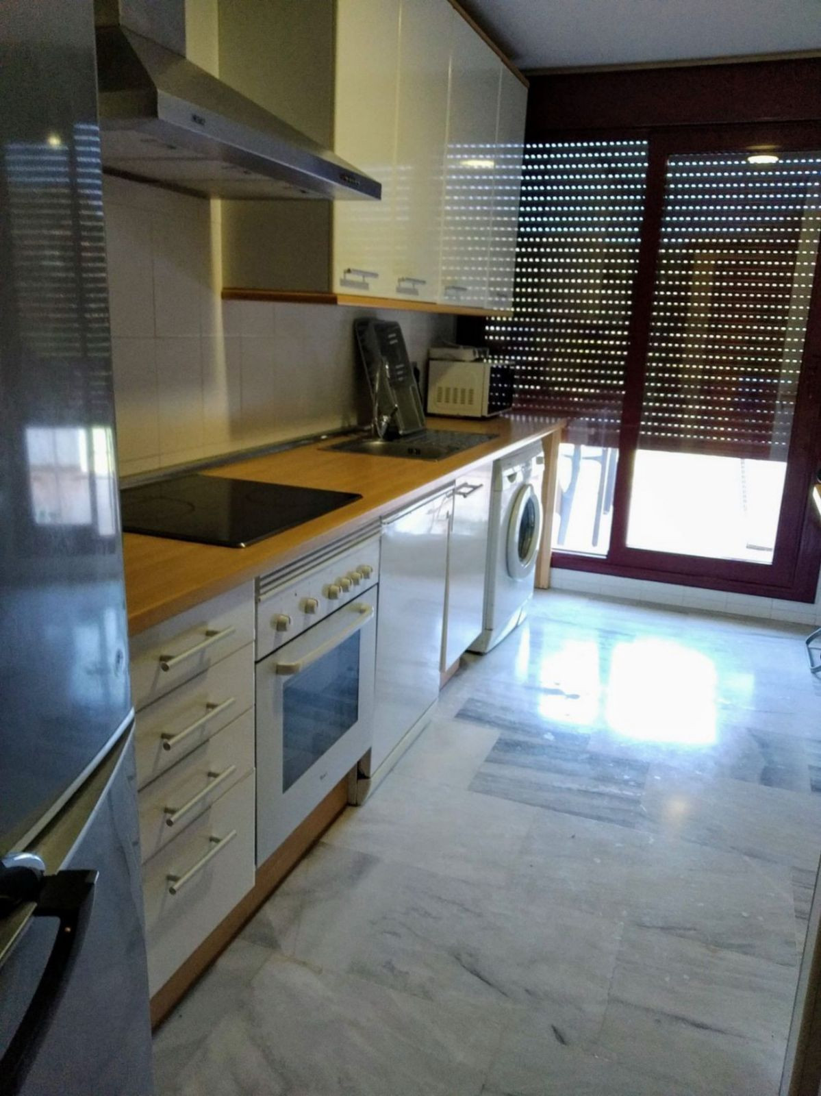 La cuisine est entièrement équipée avec plaques vitrocéramiques, four, lave-linge, lave-vaisselle et réfrigérateur. Elle bénéficie d'un accès direct à la grande terrasse. La chambre dispose d'une salle de bains privative, de placards intégrés et de la climatisation. Elle donne également directement sur la terrasse de l'appartement. La salle de bains est complète et équipée.