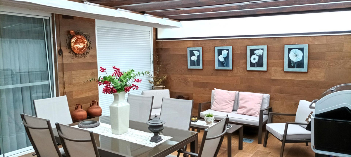 La chambre principale donne accès à la terrasse, la salle de bains a été rénovée et une autre chambre dispose d'un dressing confortable. Le salon donne sur une terrasse vitrée, idéale toute l'année ; il est même climatisé ! Un garage et un débarras sont inclus dans le prix.
