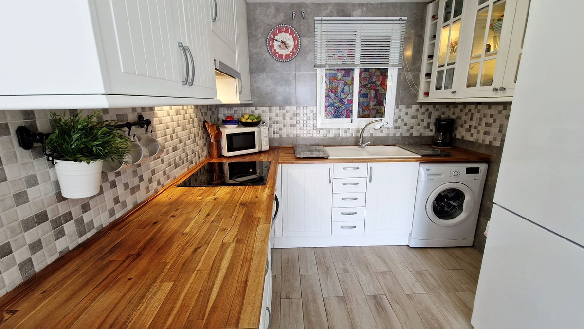 Beautifully renovated one-bedroom apartment for sale in lower Los Pacos, within walking distance to shops, restaurants, and public transport. This bright and sunny home features a spacious terrace with glass curtains and lovely sea views — perfect for year-round enjoyment.