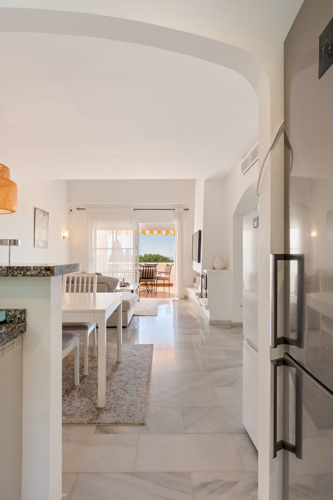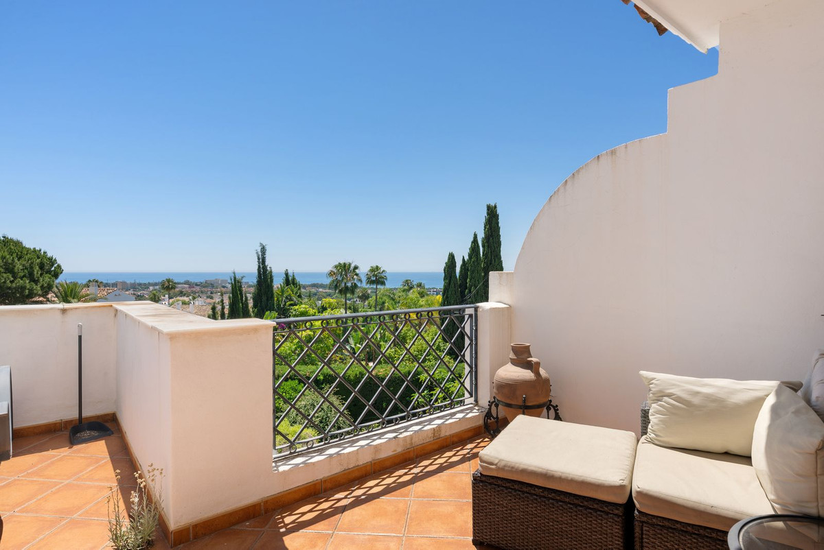Discover this stunning townhouse offering panoramic sea views in an unbeatable location close to Nueva Andalucía. Featuring three spacious bedrooms across three levels, large rooms filled with natural light, and an open-concept kitchen perfect for entertaining, this home combines comfort and style. Enjoy the two terraces ideal for relaxing or dining al fresco, and benefit from the convenience of private parking. Don't miss the opportunity to own this exceptional property in a prime area!