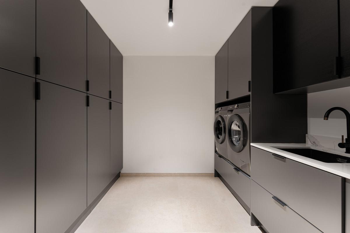 The outdoor areas have been thoughtfully designed with both aesthetics and practicality in mind, including an outdoor kitchen, BBQ and TV lounge area. The southwest-facing garden features automatic irrigation, mature lemon, orange, and mango trees, and evening lighting that enhances the property’s ambiance. The integrated pool cover and natural stone wall tiling add elegance while protecting the pool system, which is powered by solar energy and includes a hidden UV cover—ensuring warm water even in winter with minimal energy usage.