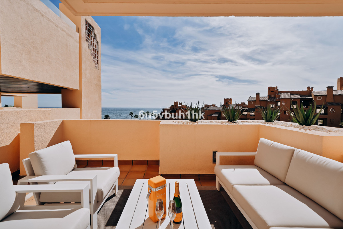 Discover this spectacular 3-bedroom, 3-bathroom duplex penthouse, located in the prestigious Bahía de la Plata development, right on the beachfront in Estepona. A truly unique property that combines luxury, comfort, and an unbeatable setting with breathtaking views of the Mediterranean Sea and the Rock of Gibraltar.