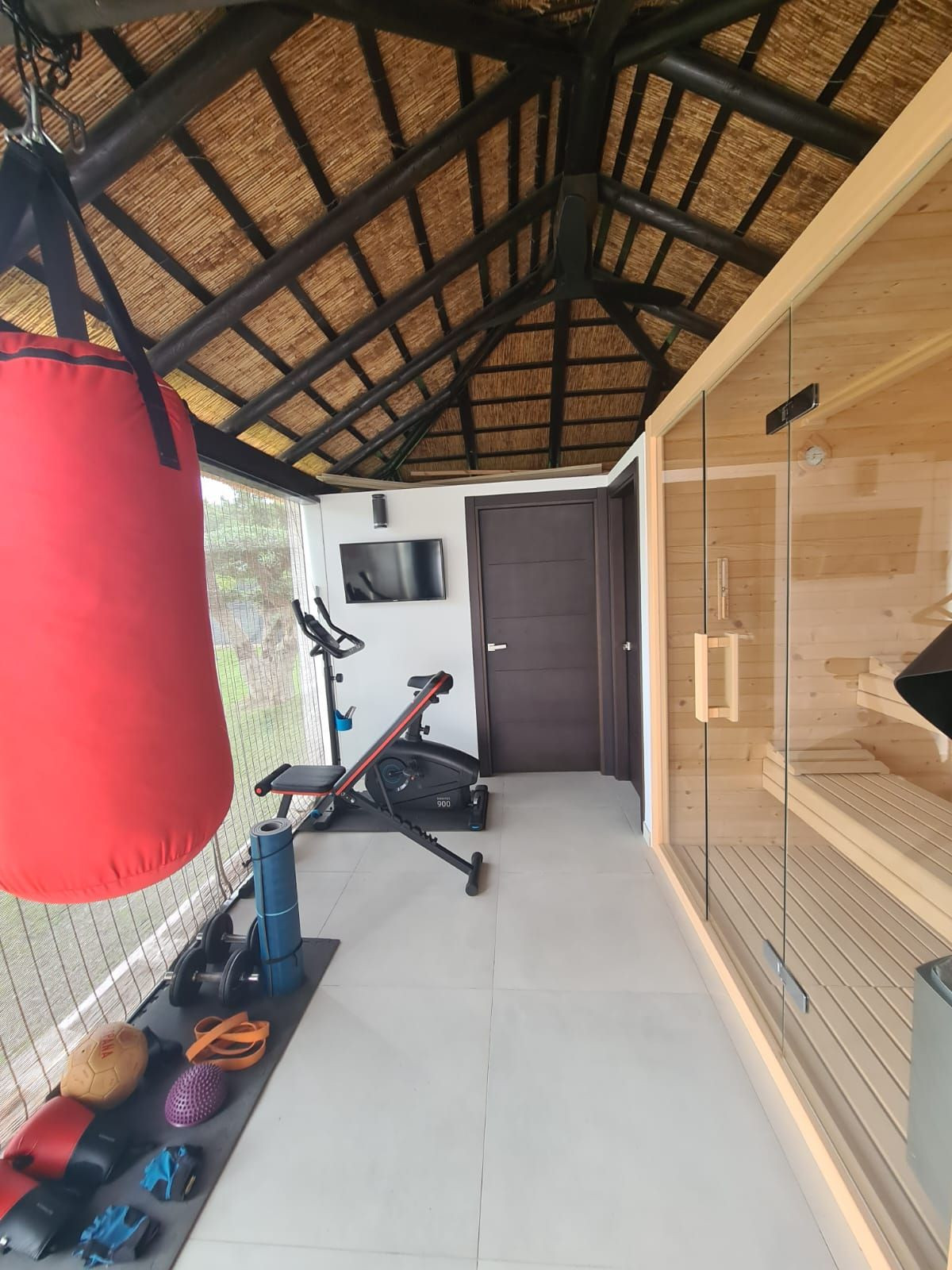 Gym/yoga area, sauna and a guest toilet
