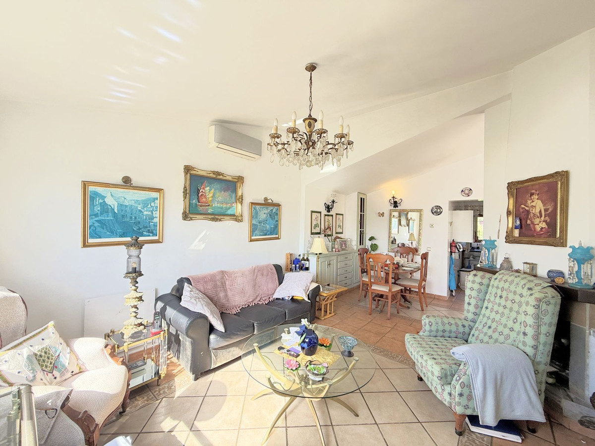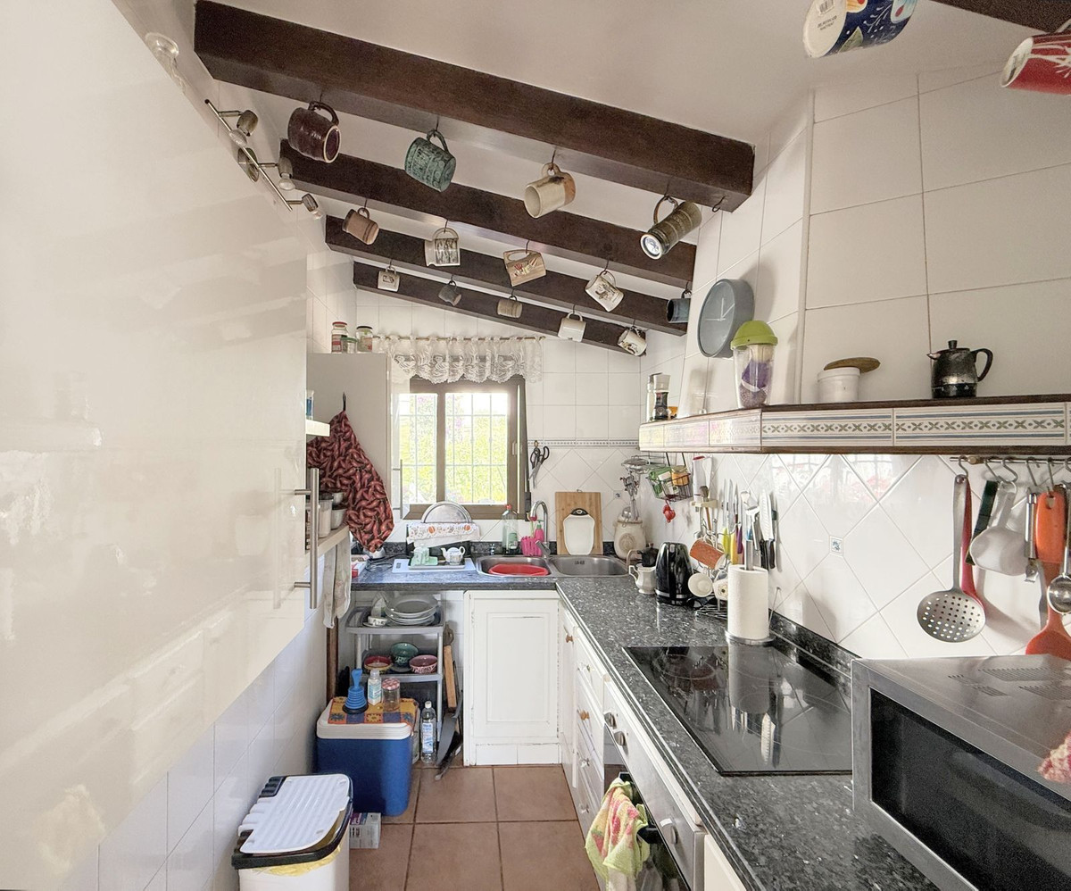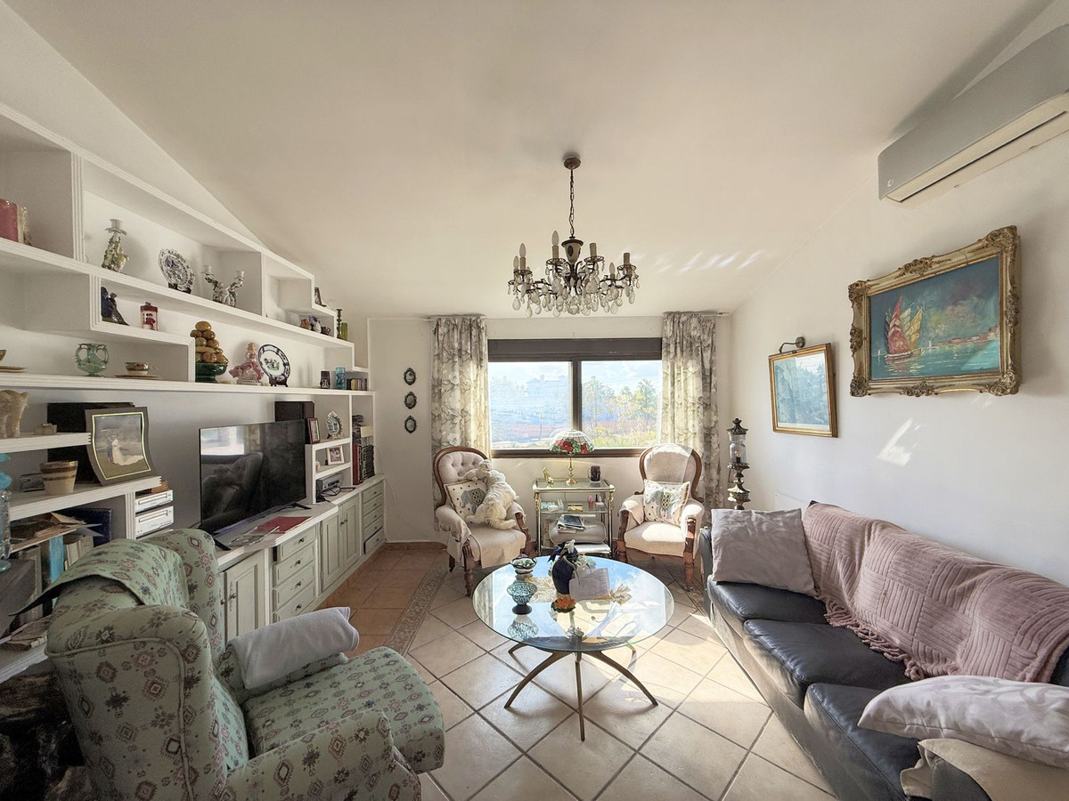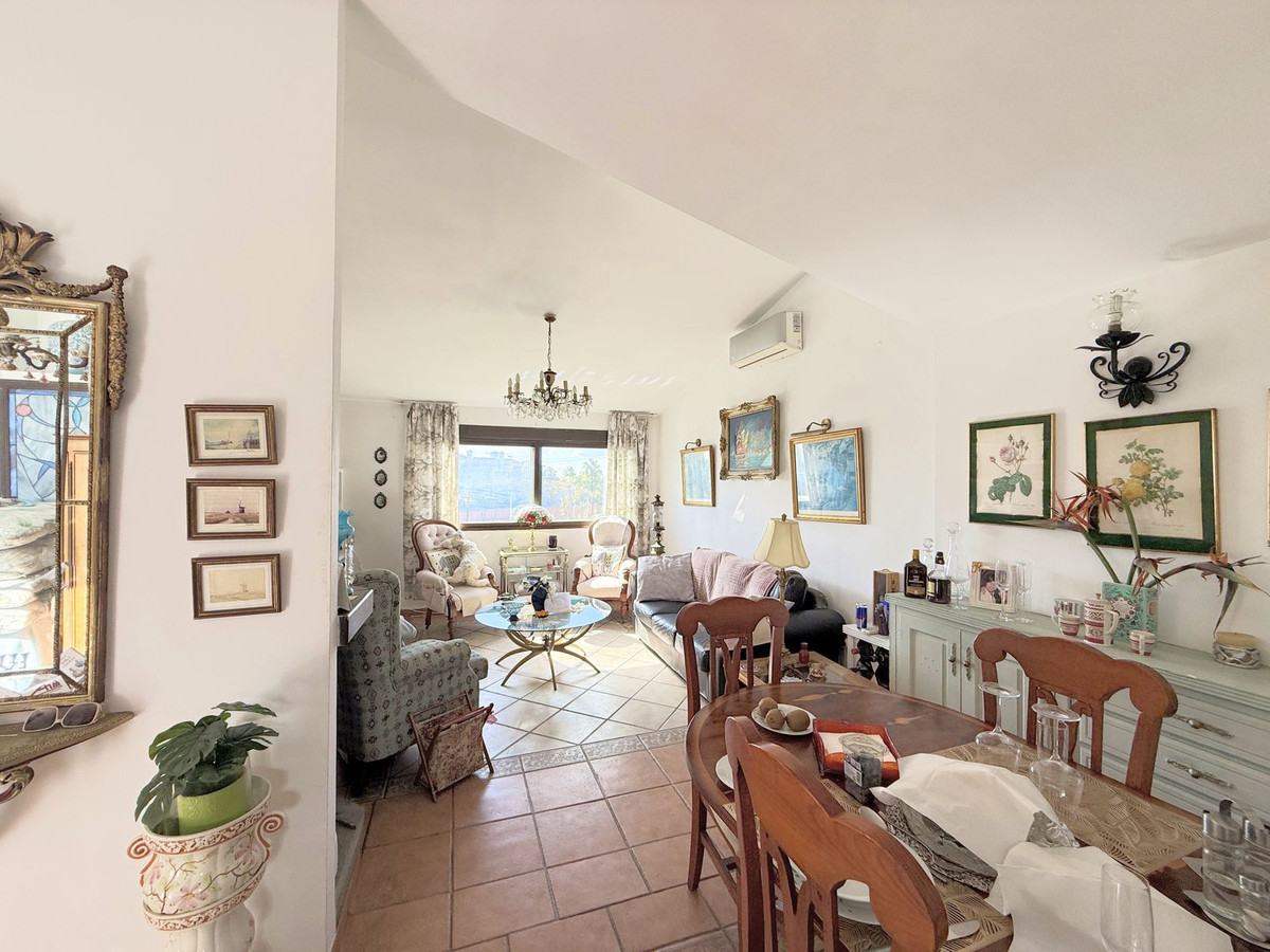 La propriété est répartie sur deux niveaux. Dès l'entrée, un charmant patio vous accueille et mène au rez-de-chaussée, qui comprend un salon lumineux, une cuisine indépendante et une terrasse offrant une agréable vue sur la mer – idéale pour se détendre et profiter du calme environnant.