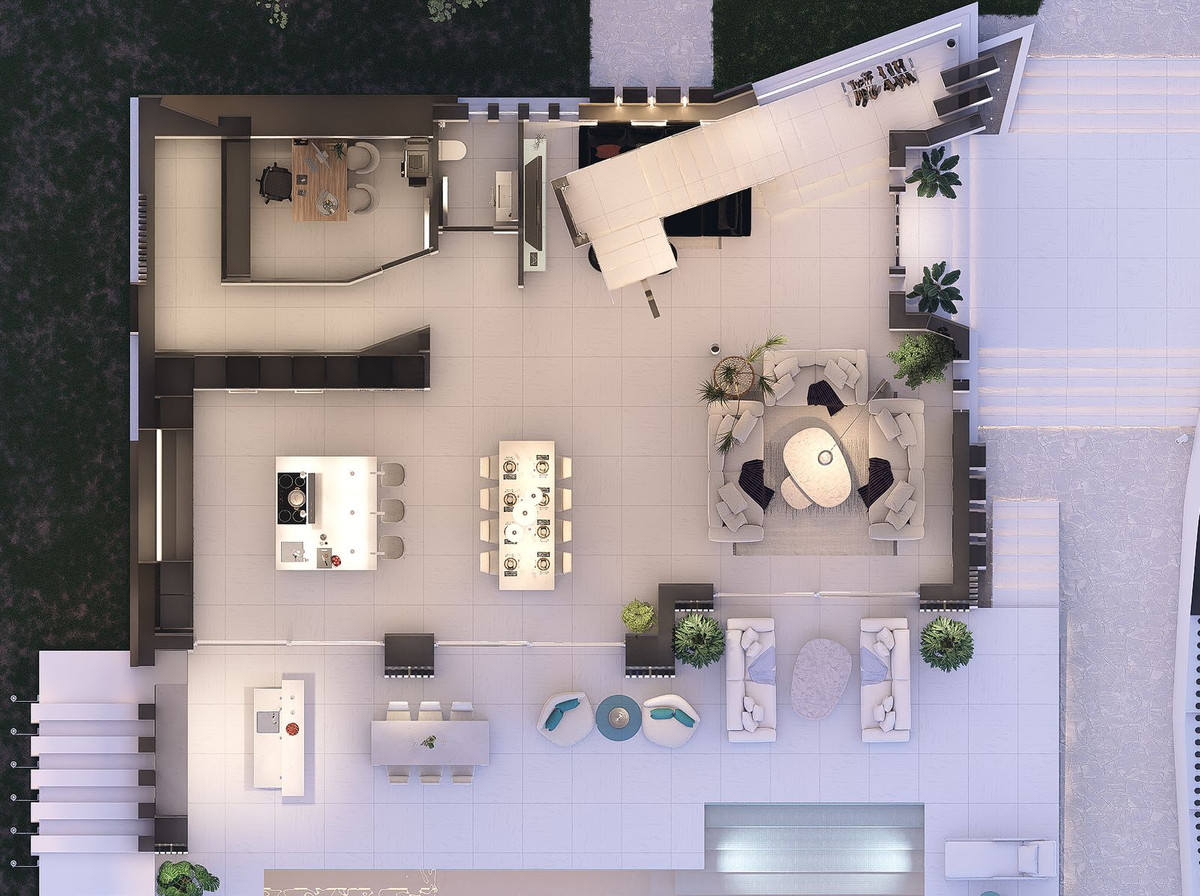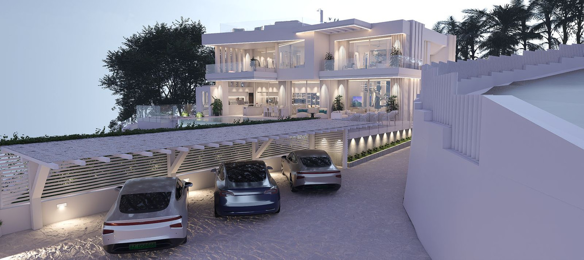 La conception de la maison a été soigneusement étudiée pour offrir des espaces généreux et un confort optimal. Elle comprendra trois suites parentales, des cuisines intérieure et extérieure, un bureau, une salle de sport, des espaces de détente sur le toit, une terrasse et une grande piscine pour la nage en longueur. Le sous-sol est également aménagé pour accueillir une chambre ou un bureau supplémentaire.