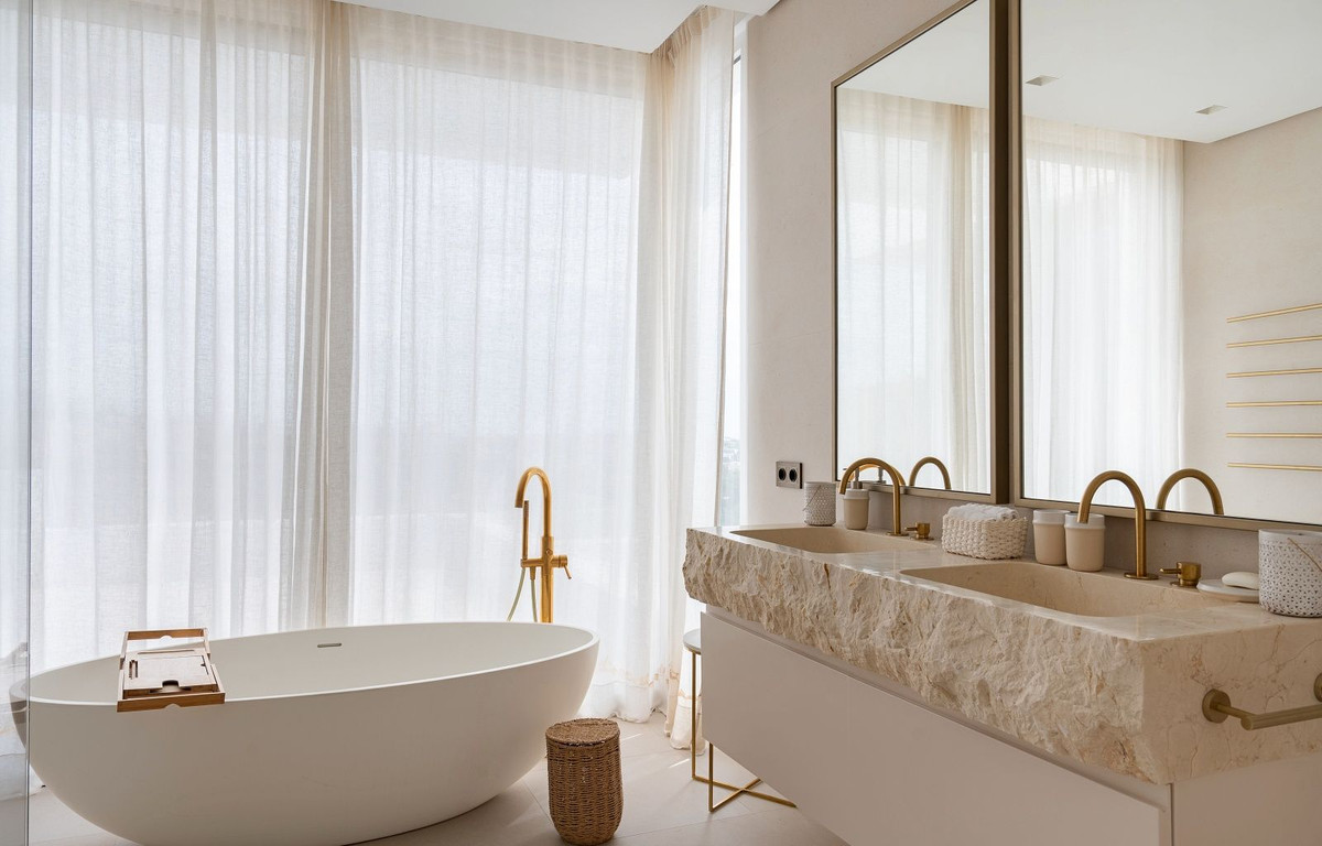 Le premier étage comprend deux chambres supplémentaires, dont la luxueuse suite parentale avec deux dressings et une grande salle de bains équipée d'une douche à l'italienne et d'une baignoire îlot. Les deux chambres donnent accès à une terrasse privée offrant une vue panoramique sur la mer, le golf, La Concha et le paysage environnant.
