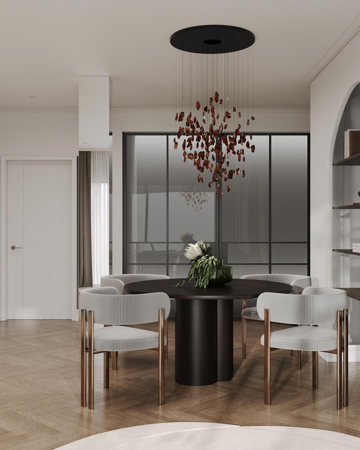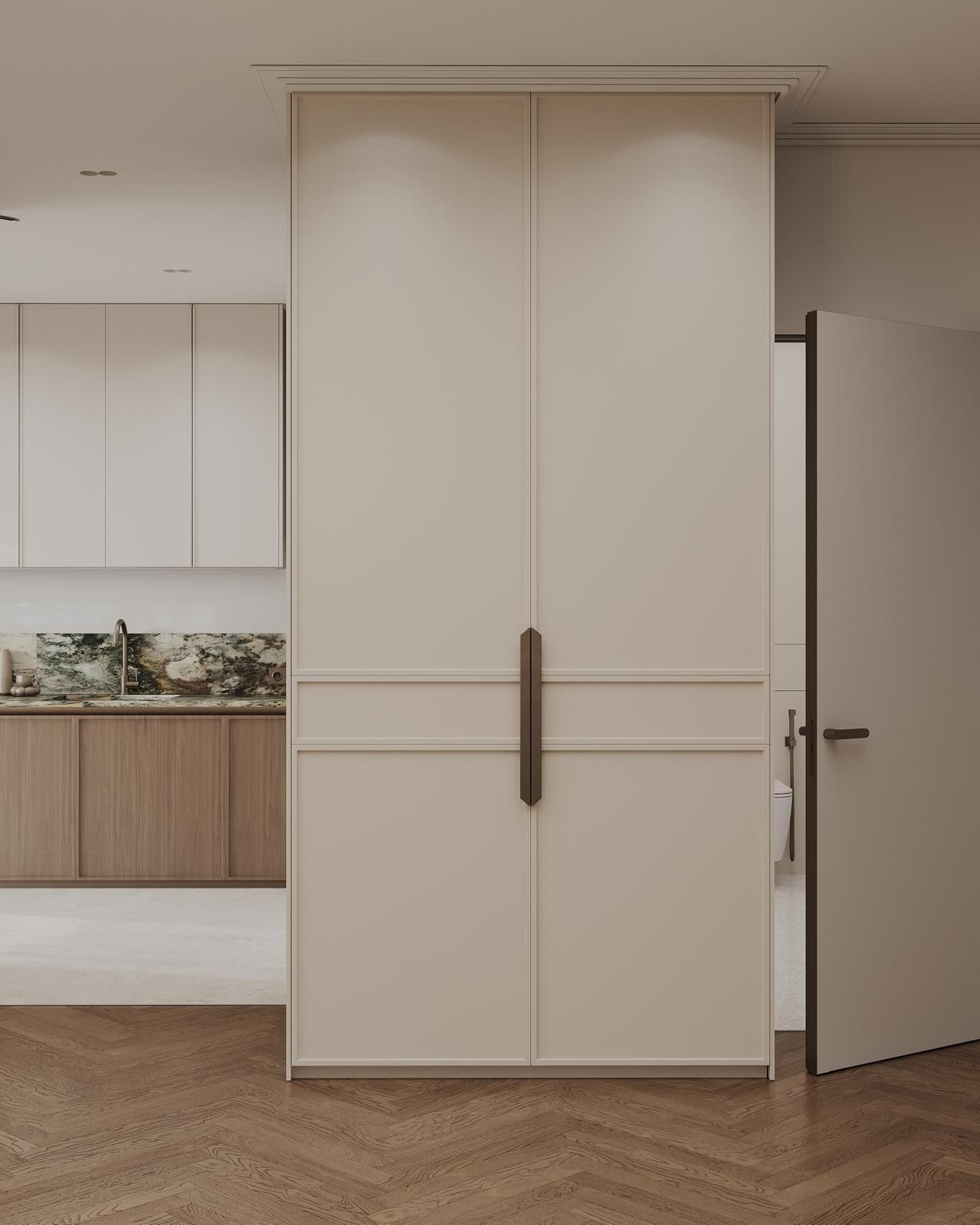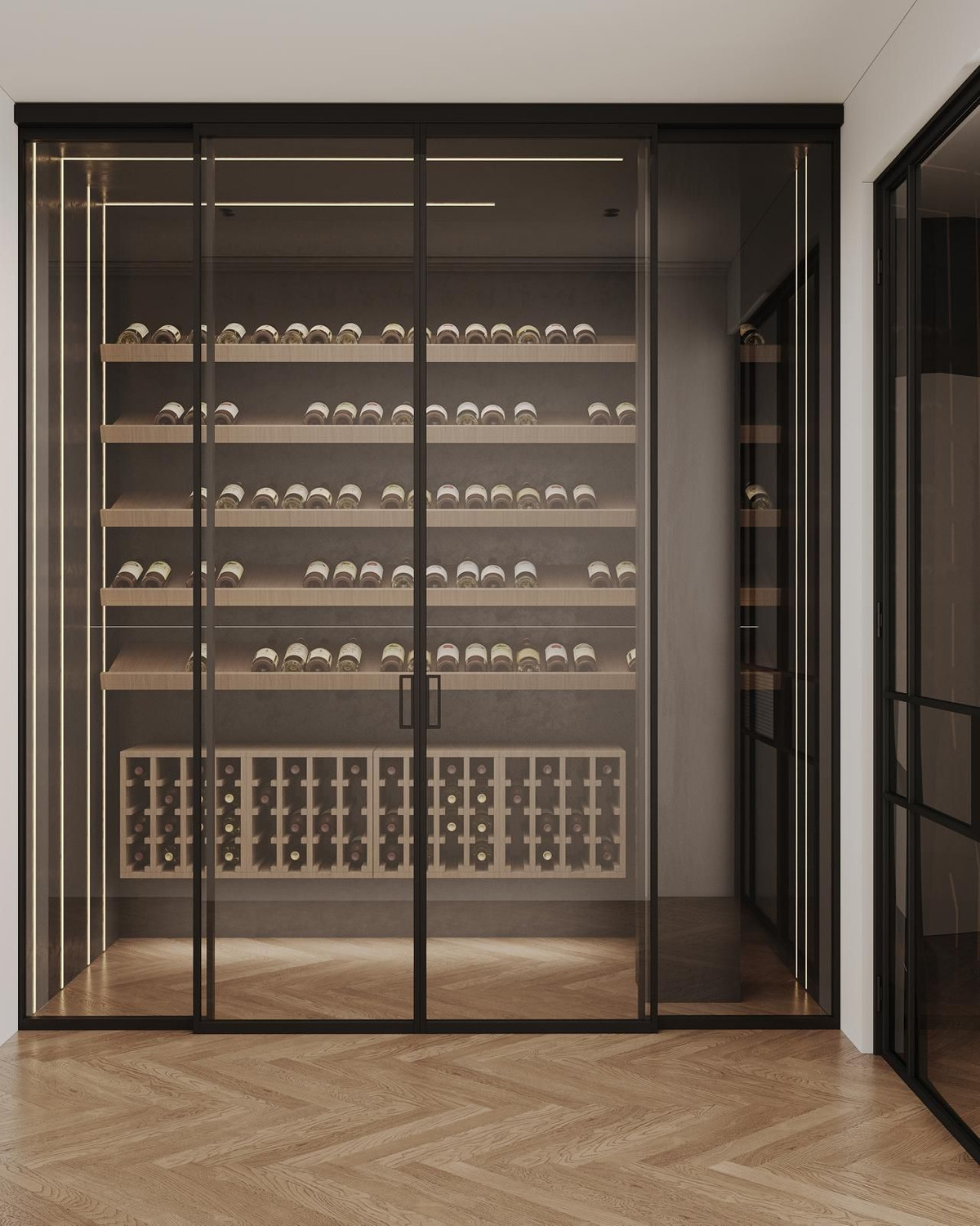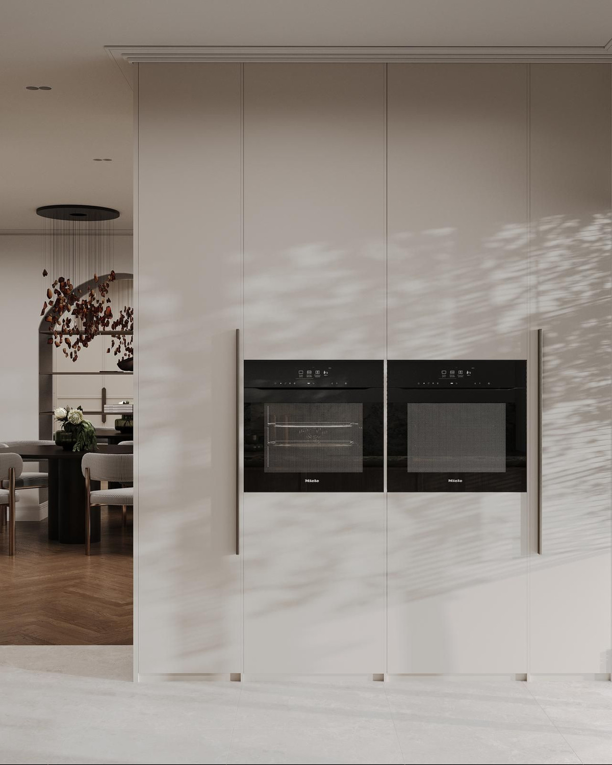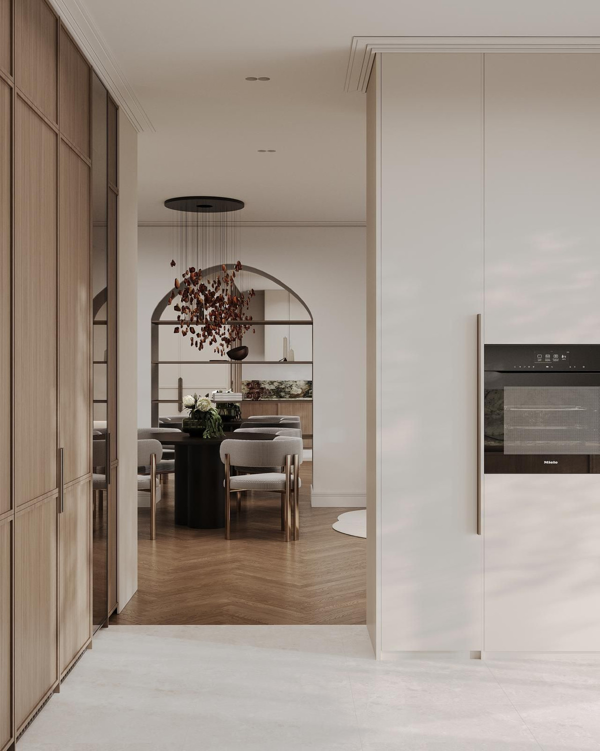 Cet appartement de plain-pied a été entièrement rénové et conçu dans un souci de confort et d'élégance. Il comprend quatre chambres et trois salles de bains, ainsi qu'un WC invités idéalement situé près de l'entrée. On y trouve également un espace bureau, un dressing dans la suite parentale, une magnifique cheminée dans le salon et même une cave à vin sur mesure – le tout réalisé avec des matériaux haut de gamme et un souci du détail exceptionnel. De larges fenêtres inondent l'espace de lumière naturelle et donnent sur une spacieuse terrasse surplombant les jardins paysagers de la résidence.