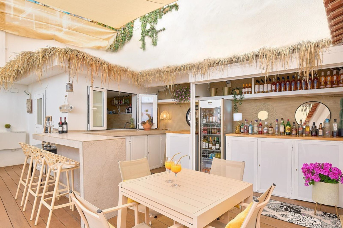 Cet élégant immeuble abrite trois appartements touristiques haut de gamme, équipés d'un ascenseur, ainsi qu'un bar sophistiqué sur le toit offrant une vue sur la mer.