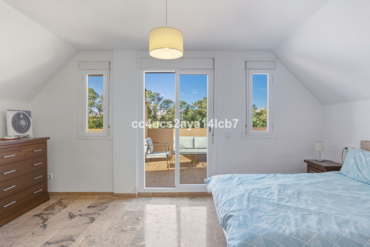 Située au sein d'une résidence sécurisée et fermée, la propriété bénéficie d'un cadre paisible à quelques pas de la plage, des chiringuitos locaux et de la promenade côtière, tout en étant à seulement quelques minutes en voiture d'Estepona et du port de plaisance de La Duquesa.