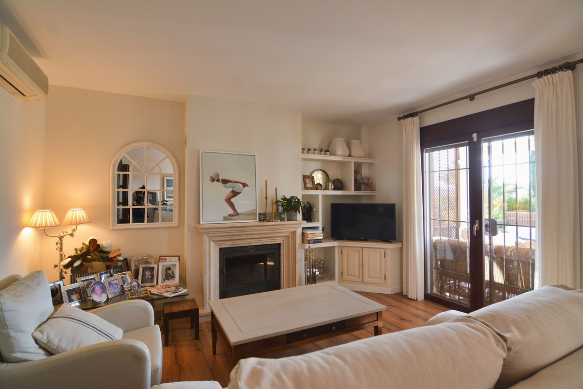 La propriété se situe sur un terrain de 858 m² avec un jardin arboré et une piscine privée, idéal pour profiter du climat ensoleillé de la Costa del Sol. Au rez-de-chaussée, un séjour spacieux et lumineux, donnant directement sur une véranda couverte, invite à la détente et aux moments conviviaux en plein air. La cuisine indépendante, grande et fonctionnelle, s'ouvre sur une charmante terrasse arrière, parfaite pour les petits-déjeuners ensoleillés. Ce niveau comprend également des toilettes invités.