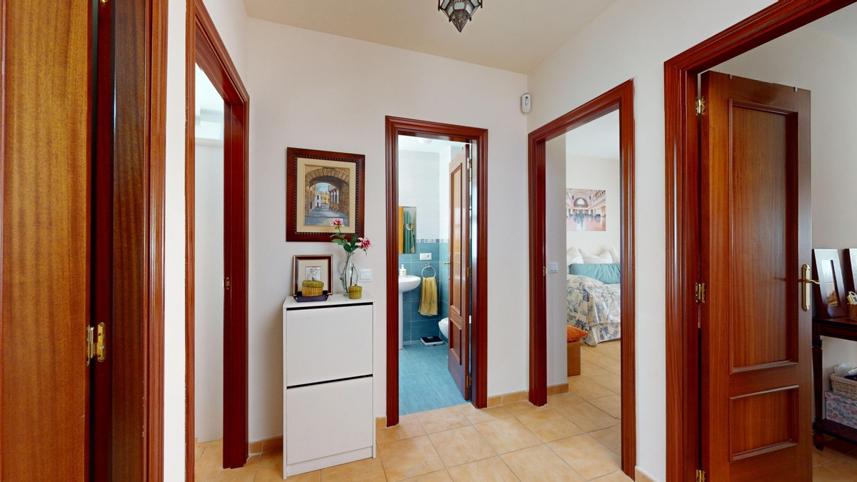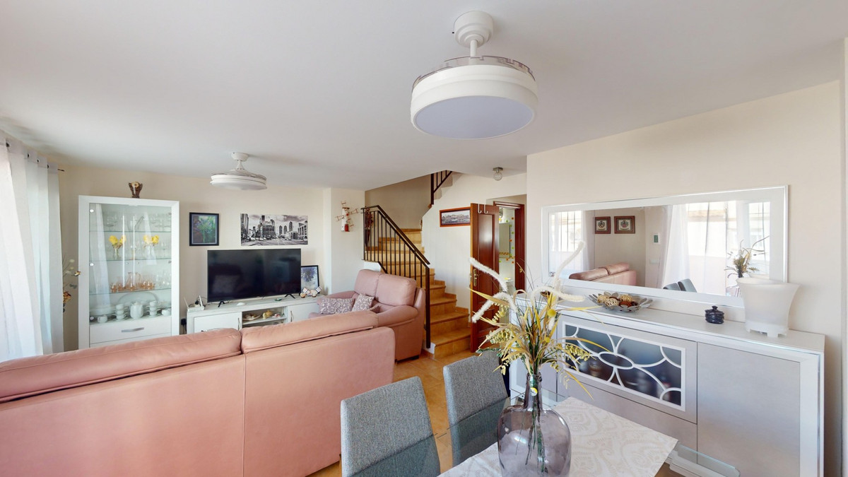Cette charmante maison d'angle, située dans le quartier résidentiel prisé de Valle Niza, offre un cadre de vie chaleureux empreint d'une touche méditerranéenne. Répartie sur deux niveaux et dotée d'une spacieuse terrasse sur le toit offrant une vue imprenable sur la mer, cette propriété réunit tout le confort nécessaire pour profiter pleinement du soleil andalou. Le rez-de-chaussée comprend une cuisine fonctionnelle et bien équipée, ainsi qu'un lumineux séjour/salle à manger avec accès direct à la terrasse, idéale pour les repas en plein air ou les moments de détente. Un WC complète ce niveau. À l'étage, vous trouverez la suite parentale avec salle de bains privative et accès à une terrasse privée, parfaite pour savourer la fraîcheur matinale. Trois autres chambres, dont une avec accès à la terrasse, offrent un espace généreux pour la famille ou les invités. Une deuxième salle de bains est également disponible. La maison est climatisée et dispose de placards intégrés pour un confort optimal et de nombreux rangements. La terrasse sur le toit offre de multiples possibilités d'aménagement, que ce soit pour bronzer ou savourer un apéritif relaxant au coucher du soleil face à la mer. Entourée d'une vaste terrasse sur trois côtés, la maison bénéficie de toujours un coin d'ombre agréable. Un petit jardin en contrebas de la terrasse offre un accès direct à la piscine commune, située à quelques pas. La résidence propose également cinq piscines supplémentaires, des terrains de tennis et de basketball, ainsi que des aires de jeux pour enfants. Cette propriété est idéale pour les familles ou comme résidence secondaire pour ceux qui recherchent une vie paisible au sein d'une communauté méditerranéenne conviviale. Nous serons ravis de vous présenter prochainement ce bien d'exception, en personne ou par visite virtuelle. Car ce monde est unique, à l'image de notre Axarquía. En Andalousie. Sur la Costa del Sol. Ici, sous le soleil…