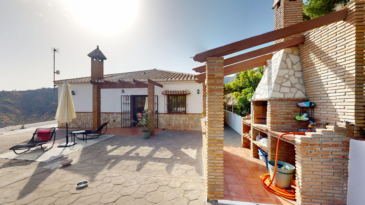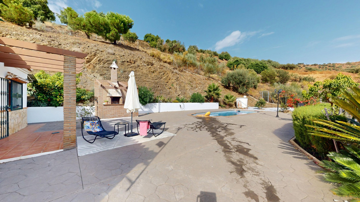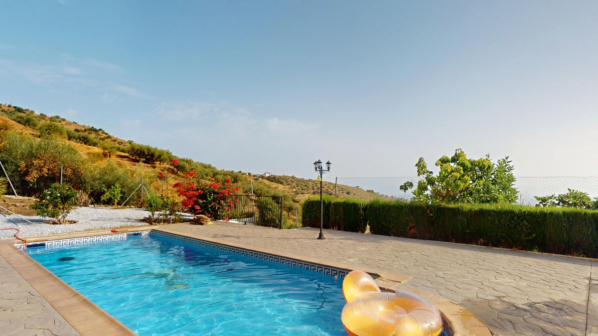 Nichée dans les magnifiques collines d'Arenas, cette charmante propriété offre des vues imprenables sur les montagnes et la mer Méditerranée. C'est le refuge idéal pour ceux qui recherchent la tranquillité, la nature et le style de vie andalou. La maison comprend trois chambres confortables et une salle de bain impeccable. La cuisine est entièrement équipée et offre tout le nécessaire pour préparer de délicieux repas tout en profitant du cadre exceptionnel. Une terrasse spacieuse invite à la détente en plein air, aux bains de soleil et aux repas avec vue. La piscine privée offre une fraîcheur bienvenue lors des chaudes journées d'été. La climatisation assure un confort optimal à l'intérieur, toute l'année. Située sur un vaste terrain planté d'oliviers centenaires, cette propriété offre espace, intimité et un charme rustique. La combinaison de la vue sur la mer, du calme et de la nature fait de cette maison un havre de paix unique. Nous sommes ravis de pouvoir vous présenter prochainement cette propriété de rêve, en personne ou par visite virtuelle. Car ce monde est unique, à l'image de notre Axarquía. En Andalousie. Sur la Costa del Sol. Ici, sous le soleil de la vie...