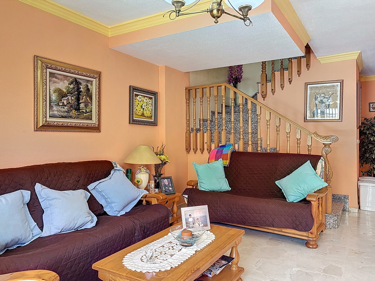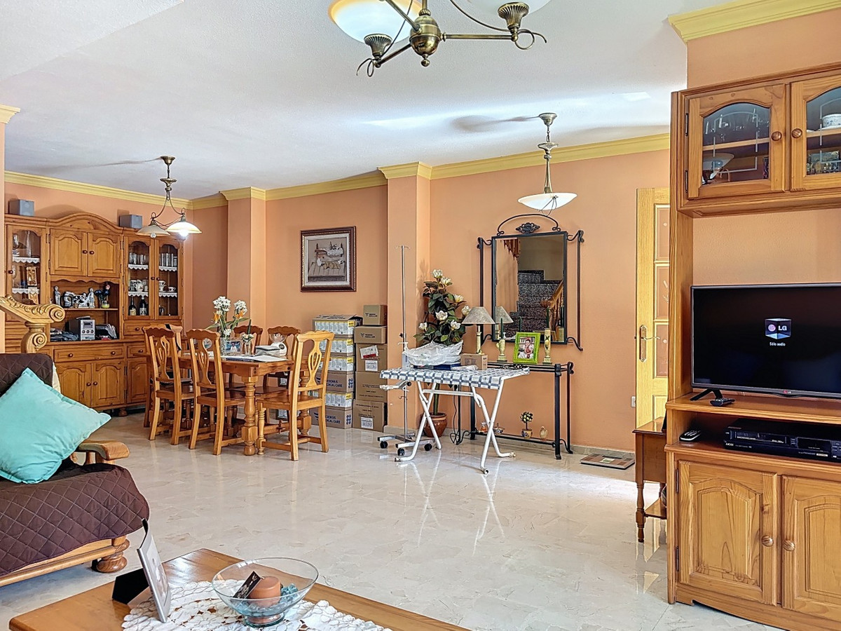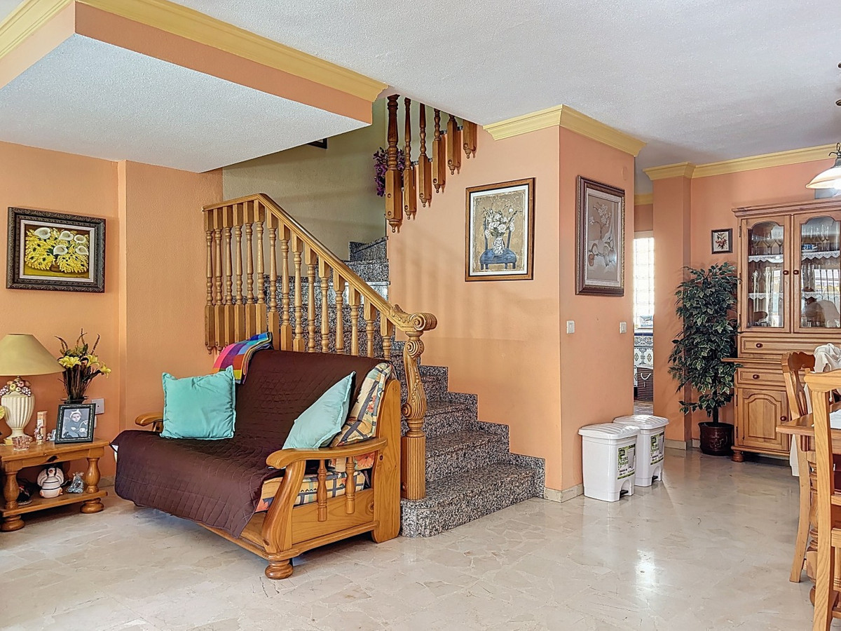 Située dans le quartier résidentiel prisé d'El Tomillar, à Torre del Mar, cette spacieuse maison de ville offre plus de 210 m² de surface habitable répartis sur plusieurs niveaux, conçue pour une vie de famille confortable. La propriété comprend six chambres et trois salles de bain complètes, ainsi qu'un WC invités au rez-de-chaussée. Ce dernier abrite un salon lumineux et aéré, une salle à manger, une cuisine entièrement équipée et une buanderie séparée donnant directement sur une terrasse arrière privative, idéale pour profiter de moments de détente en toute intimité. Un WC invités est également situé à ce niveau. Au premier étage, vous trouverez la suite parentale avec sa salle de bain et sa terrasse privatives, ainsi que trois autres chambres et une salle de bain. Le grenier aménagé offre deux chambres supplémentaires, une troisième salle de bain, une autre terrasse et des placards intégrés, créant ainsi un espace modulable pour accueillir des invités, des adolescents ou aménager un bureau. Sous les pièces de vie principales se trouve un grand sous-sol, idéal pour le rangement, les loisirs ou une salle de sport. Au niveau inférieur, un garage spacieux peut accueillir jusqu'à trois véhicules. Située dans un quartier calme et bien desservi, à proximité des écoles, des commerces et des commodités, cette maison allie espace, fonctionnalité et emplacement idéal pour les familles souhaitant s'installer sur la Costa del Sol. Nous sommes ravis de pouvoir vous présenter prochainement cette propriété de rêve, en personne ou par visite virtuelle. Car ce monde est unique, à l'image de notre Axarquía. En Andalousie. Sur la Costa del Sol. Ici, sous le soleil…