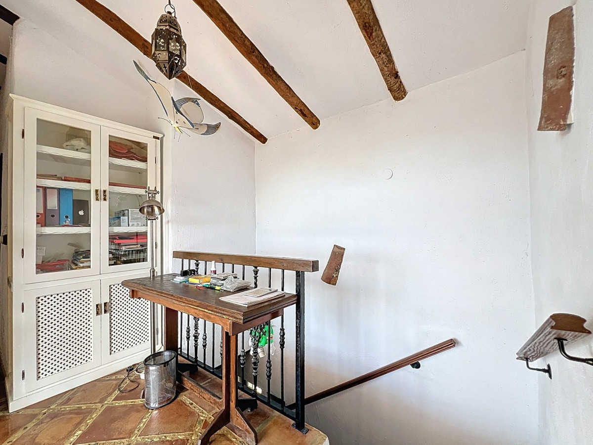Cette charmante maison de campagne espagnole, située à Sayalonga/Árchez, dans la province de Malaga, allie le charme traditionnel au confort moderne, le tout dans un cadre idyllique avec une vue imprenable. La propriété offre une surface construite de 199 m² et 148 m² habitables répartis sur deux étages, avec trois chambres et deux salles de bains, idéale pour les familles ou les invités. À l'intérieur, le style rustique est omniprésent : les poutres apparentes sous les plafonds blanchis à la chaux confèrent chaleur et authenticité à chaque pièce. Les carreaux de terre cuite soulignent le style méditerranéen et créent une harmonie visuelle. Le système de chauffage, particulièrement bien pensé, est un atout majeur : un poêle à granulés moderne dans le couloir chauffe efficacement toute la maison. On trouve également un poêle à bois chaleureux dans le salon et un radiateur infrarouge pour un confort optimal lors des soirées plus fraîches. Les salles de bains sont également équipées de radiateurs infrarouges électriques pour une ambiance agréable et chaleureuse. Le salon et les chambres disposent de placards intégrés offrant un rangement pratique et s'intégrant parfaitement au style. Des meubles confortables aux tons rouges chauds, des miroirs décoratifs, des œuvres d'art colorées et des collections personnelles confèrent à l'espace une atmosphère bohème et décontractée. Une arche majestueuse relie l'intérieur à l'une des terrasses et offre une vue imprenable sur la campagne environnante. La cuisine, à la fois charmante et fonctionnelle, est équipée de placards couleur crème, d'un plan de travail en granit, d'appareils électroménagers modernes et d'une crédence en carrelage à motifs. Une hotte aspirante décorative complète l'ensemble. Les deux salles de bains, chacune avec son propre style, sont uniques : l'une dispose d'une baignoire et de carreaux rustiques artistiques, tandis que l'autre arbore un style moderne aux lignes épurées et aux équipements contemporains. Toutes deux s'harmonisent parfaitement avec le caractère de la maison. Les chambres reflètent le style andalou, avec leurs lits en fer forgé, leurs meubles en bois, leur éclairage chaleureux et les placards intégrés mentionnés précédemment, qui apportent confort et organisation. À l'extérieur, plusieurs terrasses offrent des vues spectaculaires sur la mer, les collines ondulantes et les villages blancs. L'une d'elles, couverte, offre un potentiel d'agrandissement idéal pour créer une ou deux pièces supplémentaires. L'espace extérieur comprend également une piscine privée, divers espaces de détente, une cuisine d'été et un jardin soigné, parfait pour des soirées conviviales ou des moments de calme en pleine nature. Cette villa allie une architecture intemporelle à des touches personnelles, des équipements bien pensés et des vues spectaculaires, offrant un véritable aperçu de l'art de vivre andalou. Nous sommes ravis de pouvoir vous présenter prochainement cette propriété de rêve, en personne ou par visite virtuelle. Car ce monde est unique, à l'image de notre Axarquía. En Andalousie. Sur la Costa del Sol. Ici, sous le soleil…