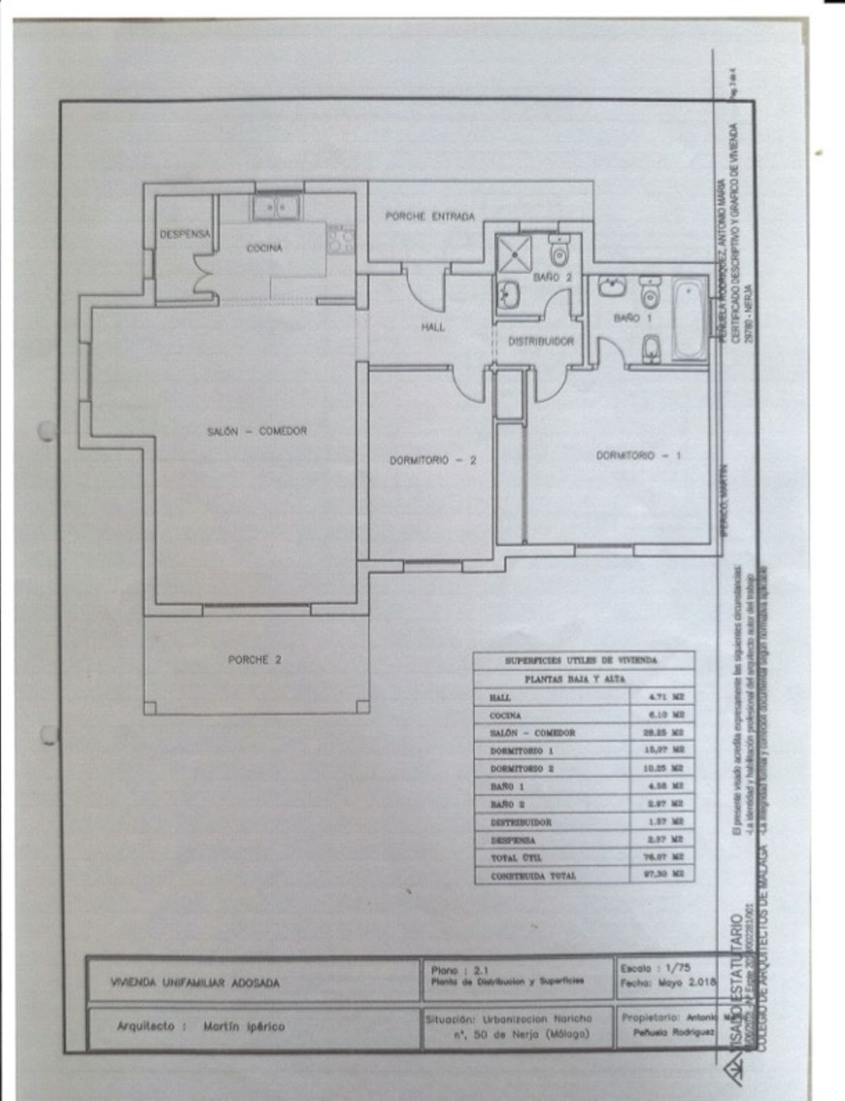 À l'intérieur, la maison dégage un charme espagnol classique, avec un salon spacieux doté d'une cheminée chaleureuse, idéale pour les soirées plus fraîches, et la climatisation pour un confort optimal toute l'année. Elle comprend deux chambres de belles dimensions avec placards intégrés et deux salles de bains, dont une suite parentale.