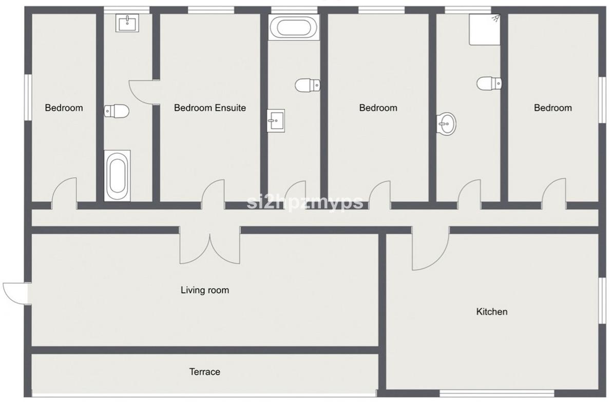 La maison principale se compose de 4 chambres, dont une suite parentale, de 3 salles de bains au total, d'une grande cuisine avec coin repas, d'un salon, de deux grandes terrasses et d'une grande buanderie.