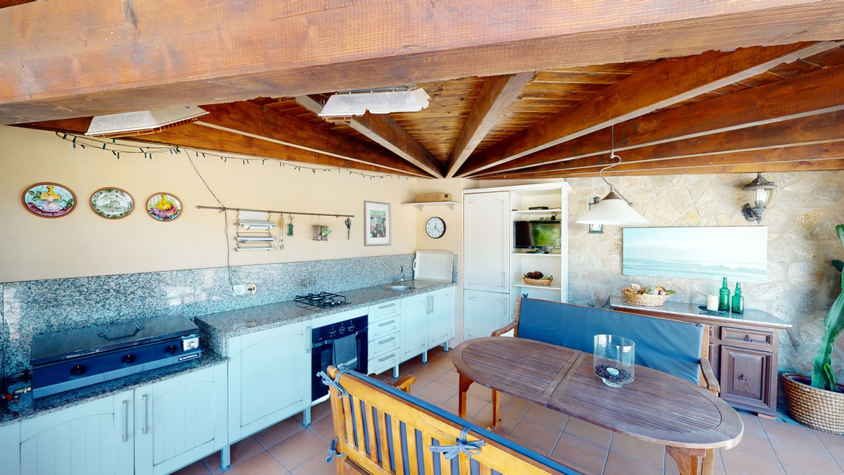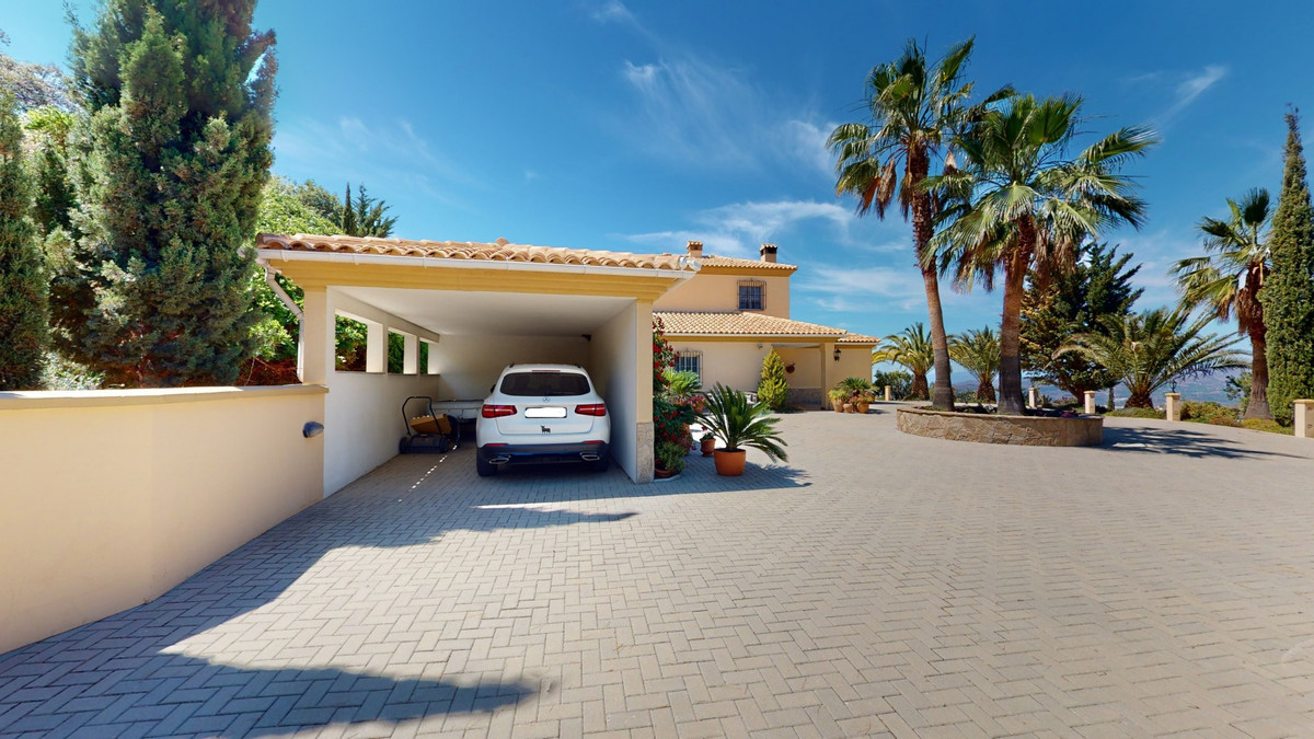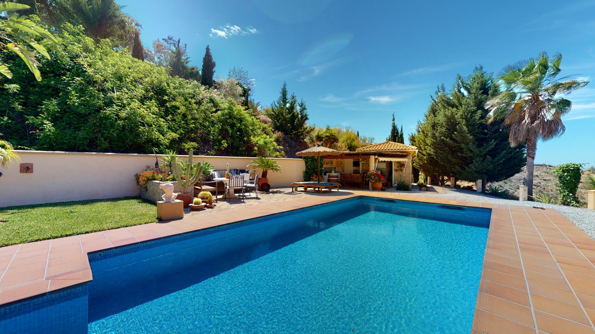 Une vue imprenable, une orientation sud-ouest idéale : la promesse d'un bonheur absolu. Cette villa d'exception, construite avec des matériaux de très haute qualité, offre un cadre idyllique avec un magnifique jardin comprenant spa, sauna et piscine, ainsi qu'une luxueuse cuisine d'été avec coin repas intégré. Située entre Algarrobo et Sayalonga, cette villa unique vous propose tout cela et bien plus encore. Son emplacement privilégié garantit une intimité totale et vous offre une vue romantique sur le coucher du soleil, se reflétant tantôt sur la Méditerranée, tantôt, selon la saison, sur le fabuleux paysage montagneux de Malaga. Un chemin privé asphalté, bordé de pins, mène à l'imposante entrée de la propriété, où un îlot de palmiers se dresse au milieu d'un rondin. Plusieurs places de parking, un garage et un grand abri voiture complètent le rez-de-chaussée. Au premier étage se trouvent le salon avec une cheminée séparée, des toilettes invités, une buanderie, une cuisine moderne donnant sur une véranda spacieuse et parfaitement équipée, ainsi qu'une très belle chambre avec salle de bains privative. À l'étage de la villa se trouve la suite parentale avec une spacieuse salle de bains privative et un dressing. La propriété est équipée du chauffage central, de la climatisation et d'une cheminée. Le terrain est agrémenté d'une variété d'arbres fruitiers, de palmiers, de plantes tropicales et de pins. La plage et la mer, ainsi que le golf et le port de plaisance de Caleta, sont à 15 minutes, et l'aéroport de Malaga à seulement 40 minutes. Nous serions ravis de vous présenter prochainement cette propriété de rêve, en personne ou par visite virtuelle. Car ce monde est unique, à l'image de notre Axarquía. En Andalousie. Sur la Costa del Sol. Ici, sous le soleil…