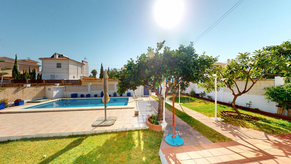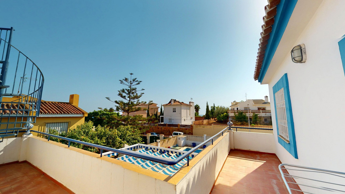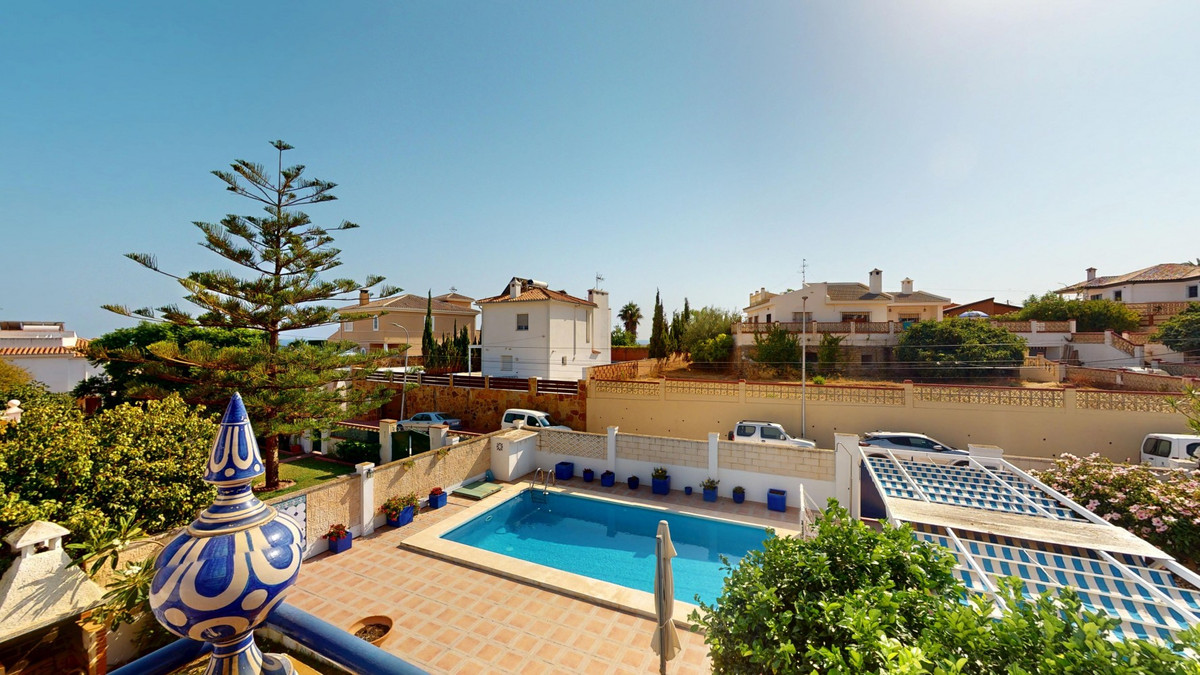 Cette magnifique villa espagnole s'étend sur deux étages et comprend trois chambres, dont une suite parentale impressionnante, et deux salles de bains. Elle allie le charme andalou traditionnel au confort moderne. Son design d'inspiration méditerranéenne se reflète dans les sols en terre cuite, les chaleureux éléments en bois et les espaces lumineux et aérés. Le séjour bénéficie d'une configuration unique en demi-niveaux avec des frises de carrelage décoratives, une cheminée accueillante et des étagères intégrées. Un élégant escalier en bois mène à l'étage, tandis que la cuisine ouverte communique harmonieusement avec le séjour, idéale pour la vie de famille ou pour recevoir. Les chambres sont spacieuses et disposent de placards intégrés pour un rangement optimal. De grandes fenêtres avec volets en bois traditionnels laissent entrer la lumière naturelle et offrent des vues pittoresques sur les environs. Les salles de bains sont pleines de caractère, l'une d'elles étant dotée d'un sol à damier bleu et blanc avec des frises de carrelage décoratives. À l'extérieur, la villa offre un jardin privé avec piscine, un espace détente idéal pour se relaxer, un garage et une terrasse sur le toit avec une vue imprenable, parfaite pour profiter du climat et des paysages de la Costa del Sol. Située à Chilches, cette propriété est idéale comme résidence principale, résidence secondaire ou investissement locatif. Nous sommes ravis de pouvoir vous présenter prochainement ce bien d'exception, en personne ou virtuellement. Car ce monde est unique, à l'image de notre Axarquía. En Andalousie. Sur la Costa del Sol. Ici, la vie est belle et ensoleillée…