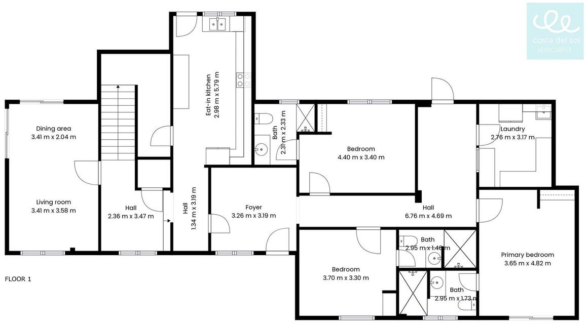 La maison principale offre au rez-de-chaussée un vaste séjour, une cuisine moderne et des toilettes invités. À l'étage, vous trouverez trois chambres lumineuses et une salle de bains élégante, agencées pour plus d'intimité et de confort. Cette partie du cortijo possède sa propre entrée et est totalement indépendante ; idéale pour y vivre à l'année ou comme refuge privé.
