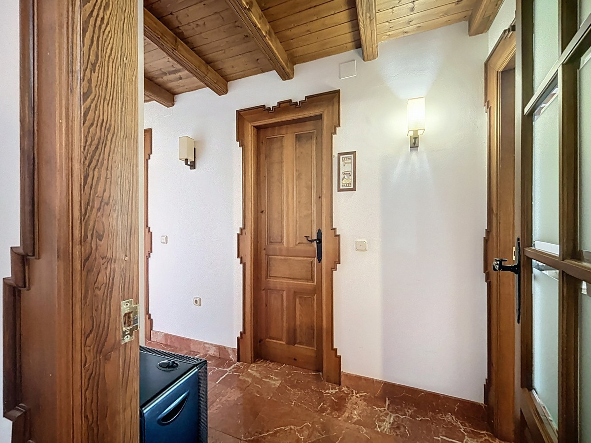 Cette charmante villa située à Los Romanes, près de Malaga, allie harmonieusement l'architecture espagnole traditionnelle au confort moderne. La maison principale comprend quatre chambres, dont une spacieuse suite parentale, trois salles de bains complètes, des toilettes invités, une buanderie et une cave à vin au sous-sol, idéale pour les amateurs de vin. Les pièces à vivre se distinguent par leurs plafonds à poutres apparentes qui leur confèrent chaleur et cachet. Le salon principal se démarque par son plafond en bois orné de motifs solaires et son grand lustre en fer forgé. Une cheminée et un mobilier confortable créent une ambiance chaleureuse. De grandes fenêtres et des portes-fenêtres inondent l'espace de lumière naturelle et offrent de superbes vues sur le lac Viñuela et la nature environnante. La propriété comprend également un appartement indépendant avec deux chambres, une salle de bains et un espace de vie ouvert convivial avec cuisine équipée, idéal pour accueillir des invités ou pour un hébergement supplémentaire. À l'extérieur, la villa bénéficie d'un vaste terrain avec piscine privée, cuisine d'été avec barbecue, terrasse couverte, pavillon, deux garages et deux remises pouvant être transformées en un autre appartement. De plus, la propriété dispose de son propre puits et d'une citerne dans l'un des garages, garantissant un approvisionnement en eau fiable toute l'année. Nous sommes ravis de pouvoir vous présenter prochainement cette propriété de rêve, en personne ou par visite virtuelle. Car ce monde est unique, à l'image de notre Axarquía. En Andalousie. Sur la Costa del Sol. Ici, sous le soleil…