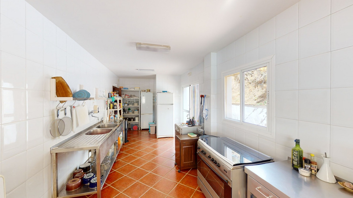 Nous vous présentons ce magnifique hôtel/chambres d'hôtes situé à proximité de la charmante ville de Macharaviaya. La propriété s'étend sur un terrain de 18 313 m². L'hôtel lui-même, d'une superficie de 500 m², est idéal pour concrétiser votre rêve de posséder une chambre d'hôtes ou un hôtel. En entrant dans le bâtiment, vous découvrirez un espace spacieux faisant office de réception, de bar et de salle à manger. Vous y trouverez également des espaces détente et deux toilettes. Attenante à cet espace se trouve la cuisine entièrement équipée avec du matériel professionnel. Au premier étage, deux chambres sont aménagées. L'une d'elles est spécialement conçue pour les personnes à mobilité réduite. L'encadrement de la porte est suffisamment large pour permettre le passage d'un fauteuil roulant et des barres d'appui sont prévues à côté des toilettes et de la baignoire. La seconde chambre peut également servir de chambre supplémentaire, de bureau, de débarras, etc. À côté de ces deux chambres se trouvent des toilettes réservées au personnel. Un escalier extérieur mène aux cinq grandes et superbes chambres. Toutes disposent d'une salle de bain privative, de placards intégrés et certaines possèdent une terrasse. Dans ces chambres, les portes sont larges. Une rampe ou un monte-personne serait nécessaire pour accéder à cet étage en fauteuil roulant. Cette propriété pourrait être entièrement adaptée aux personnes à mobilité réduite. À l'extérieur, une piscine de 12 x 6 mètres est idéale pour se rafraîchir lors des chaudes journées d'été. On y trouve également un jardin, un parking pour plusieurs voitures et une petite chapelle, actuellement utilisée comme espace de rangement. De nombreuses possibilités de réaménagement s'offrent à vous. L'hôtel bénéficie d'une vue panoramique imprenable sur la mer et la campagne environnante. Ne manquez pas cette occasion unique de découvrir cette propriété et laissez-vous inspirer par les possibilités de transformation que vous pourriez en faire selon vos goûts. Nous serons ravis de vous présenter prochainement cette propriété de rêve, en personne ou en visite virtuelle. Car ce monde est unique, à l'image de notre Axarquía. En Andalousie. Sur la Costa del Sol. Ici, sous le soleil…
