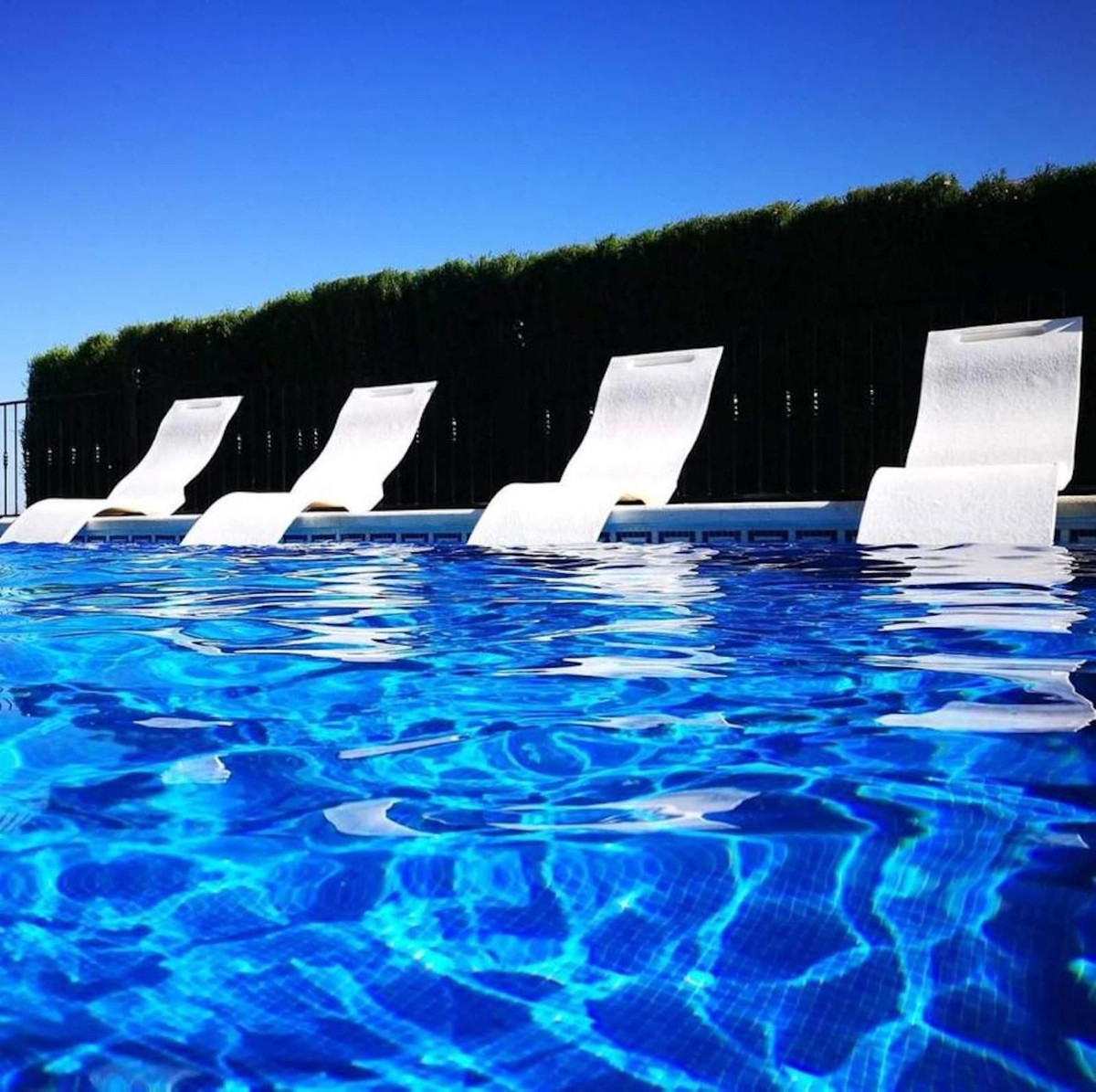 L'étage supérieur comprend une chambre double avec terrasse privée, deux chambres doubles avec terrasse commune donnant sur la piscine, et une quatrième chambre double avec balconnet.