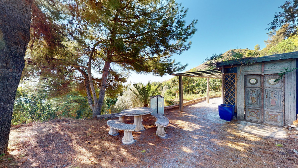 Entre la Sierra de Almijara et la mer Méditerranée se niche cette spectaculaire finca écologique de 4 hectares, bordant le parc naturel de Maro-Cerro Gorde, offrant un havre de paix et d'intimité absolue. La propriété s'étend sur un terrain de 35 955 mètres carrés et propose une surface habitable totale de 270 mètres carrés. Entourée d'une nature luxuriante, elle offre des vues imprenables sur la mer et les montagnes. Grâce à une végétation variée, les différents bâtiments sont parfaitement dissimulés, créant une atmosphère sereine et forestière. La maison principale comprend un vaste séjour avec une magnifique cheminée, une cuisine entièrement équipée avec cellier, une salle à manger, une chambre, une salle de bains avec douche à effet pluie, des toilettes invités, un salon de lecture et de détente, un sauna, une salle de sport et un bureau pouvant être transformé en une grande chambre. En sortant du bureau, on accède à une pièce construite en briques naturelles, évoquant un igloo. Cette pièce dispose également d'une terrasse idéale pour se détendre et profiter du cadre environnant. La maison secondaire offre un espace chaleureux avec un séjour-salle à manger et une cheminée, une cuisine entièrement équipée, une chambre, une salle de bains et une terrasse privative, à l'abri des regards pour une intimité optimale. La maison d'hôtes comprend une chambre, une cuisine et une salle de bains. La finca dispose d'un atelier équipé de 25 m². Elle offre également un espace piscine, un lieu idéal pour se détendre en toute tranquillité. Grâce à la nature environnante et à la taille de la piscine, on a l'impression de nager dans un lac en pleine forêt. La propriété se compose de cinq bâtiments stratégiquement répartis et espacés pour garantir une intimité et une tranquillité maximales à ses occupants. Une plateforme d'environ 300 m² offre une vue panoramique à 360° sur la mer et les montagnes. Le domaine abrite une grande variété d'arbres fruitiers et de fleurs du monde entier, avec 174 variétés différentes. La propriété bénéficie d'une source naturelle, d'un puits et de l'eau du réseau d'irrigation. Elle dispose de deux réservoirs d'eau couverts en béton d'une capacité de 125 000 litres chacun, ainsi que d'un réservoir d'eau de source de 3 000 litres dans la maison principale. La finca est accessible par une route asphaltée de 4 km depuis la route N-340. Elle se situe à 6 km des plages du parc naturel, à 10 km du centre de Nerja, à 80 km de l'aéroport de Malaga et à 90 km du centre de Grenade. Avec tous les services et une autonomie totale, dans ce qui est considéré comme le meilleur climat d'Europe, ce lieu offre une excellente qualité de vie. Nous serons ravis de vous présenter prochainement cette propriété de rêve, en personne ou par visite virtuelle. Car ce monde est unique, à l'image de notre Axarquía. En Andalousie. Sur la Costa del Sol. Ici, sous le soleil…