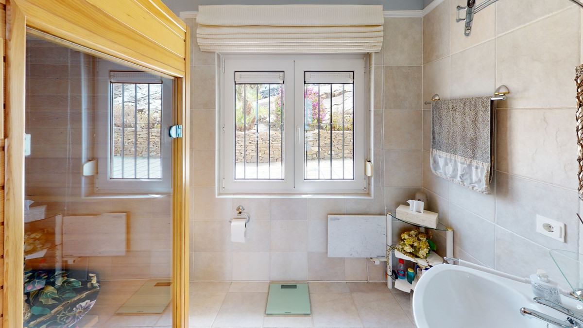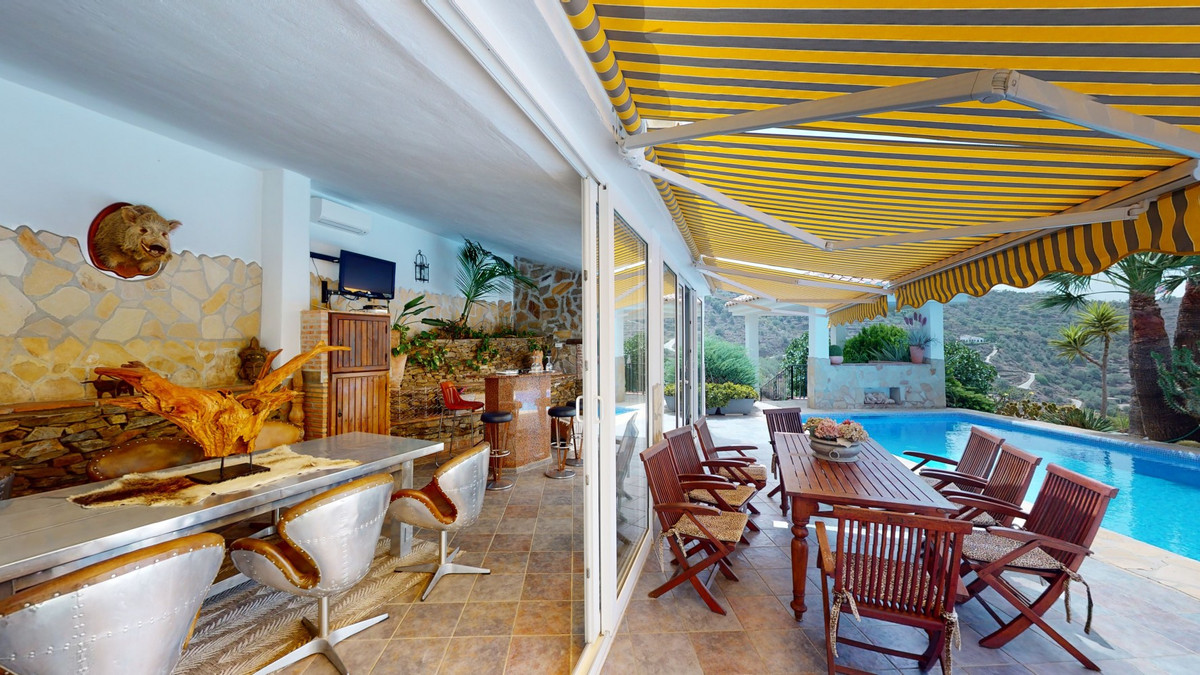 Si vous rêvez de vivre dans une villa d'exception, de construction haut de gamme, avec piscine et vue imprenable sur la mer, alors vous avez trouvé la propriété idéale. Cette luxueuse villa de 280 m² offre tout le confort dont vous pourriez rêver. Au cœur de cette villa moderne, mêlant style andalou, se trouve un charmant patio qui confère à la maison une touche d'élégance et crée une ambiance lumineuse et agréable. Il dessert l'ensemble du rez-de-chaussée. Depuis l'entrée, on accède d'un côté à une pièce faisant office de bureau, ainsi qu'à une chambre avec salle de bains privative et au spacieux salon avec cheminée et vue sur la mer. Ce dernier jouxte la salle à manger et la cuisine, d'où l'on accède au couloir qui rejoint l'entrée. Ce couloir dessert également le dressing avec salle de bains privative et sauna. Un escalier mène de l'entrée au premier étage. Vous y trouverez la vaste suite parentale avec salle de bains privative et véranda. Un escalier extérieur permet d'accéder à l'espace extérieur, offrant ainsi à cette suite une entrée indépendante. Le magnifique espace extérieur comprend un garage double ainsi qu'une buanderie faisant également office de rangement. Juste à côté de la piscine accueillante se trouvent une salle de sport avec salle de bain, ainsi qu'une annexe vitrée faisant office de salon avec cuisine d'été. L'endroit idéal pour des fêtes et des dîners en famille ou entre amis. Sur la propriété de 19 500 m², un paddock avec abri et allée privée est dédié aux chevaux. Il est situé en contrebas de la maison. L'allée mène également à un petit manège avec trois boxes, une sellerie et une douche pour les chevaux. Vous disposez d'une grande liberté d'aménagement sur cette vaste propriété. Que ce soit pour créer un potager, agrandir l'espace dédié aux chevaux, transformer le manège en court de tennis, terrain de volley-ball ou petit terrain de football, ou même envisager un tout autre projet, le choix vous appartient. Nous serions ravis de vous présenter prochainement cette propriété de rêve, en personne ou par visite virtuelle. Car ce monde est unique, à l'image de notre Axarquía. En Andalousie. Sur la Costa del Sol. Ici, du bon côté de la vie...