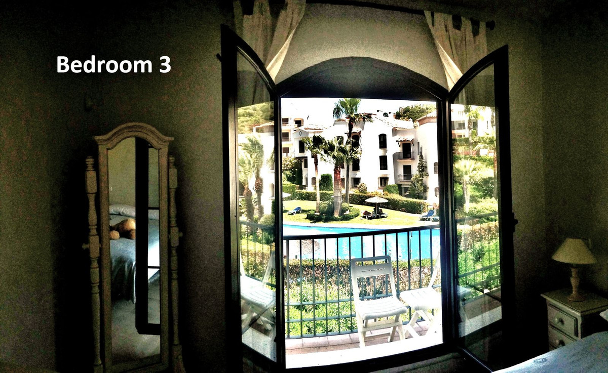 La chambre principale s'ouvre sur la terrasse inférieure donnant sur le parcours de golf, tandis que les deux autres chambres s'ouvrent sur des balcons donnant sur la piscine de la phase 2.