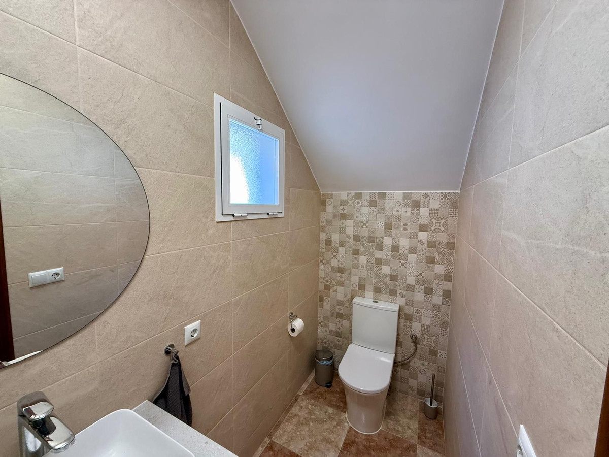 Au premier étage, la lumière naturelle inonde les deux chambres donnant sur la mer : toutes deux s’ouvrent sur une grande terrasse et offrent une vue partielle sur la mer. La chambre située à l’arrière est spacieuse et dispose d’un balconnet. Cet étage comprend également deux salles de bains rénovées, dont une attenante à la grande chambre parentale.