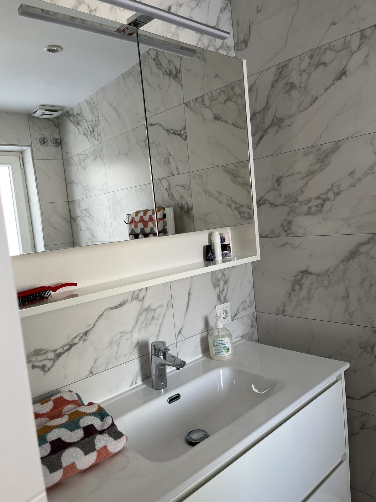 On the main floor, you will find a bright and cozy living room with direct access to the private garden, ideal for enjoying the sun all year round. Next to the living room is a fully equipped kitchen and a guest toilet. The entire space has been designed to offer maximum comfort for everyday living.