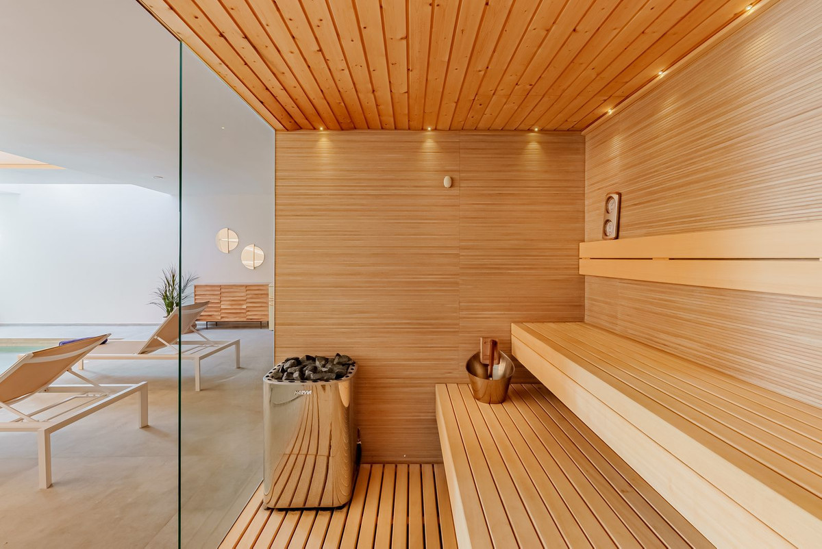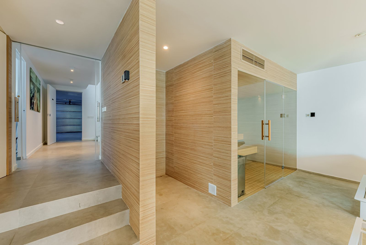 On the basement level, this estate offers a luxurious spa with indoor heated swimming pool and sauna. Located on the New Golden Mile in Playa del Saladillo with lovely wide beaches and beautiful sand dunes. Within short walking distance you will find the great Pepe's beach Chiringuito restaurant, La Antiqua and just a 5 minutes' walk to Anantara (Villa Padierna) Beach Club. By car you will reach San Pedro in 7 minutes and Puerto Banus in just 10 minutes.